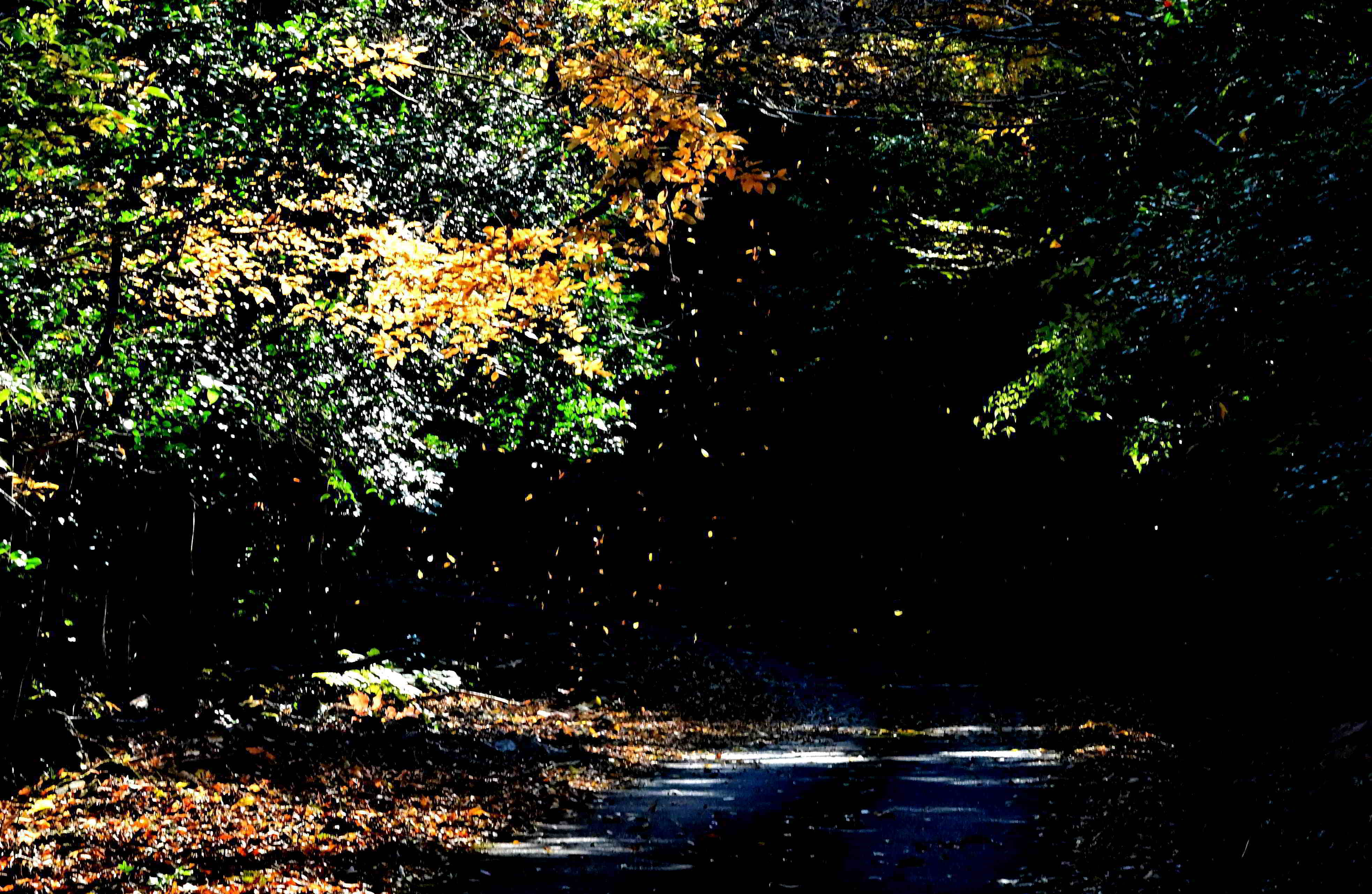 投稿を表示西日に照らされ舞い降りる落ち葉。