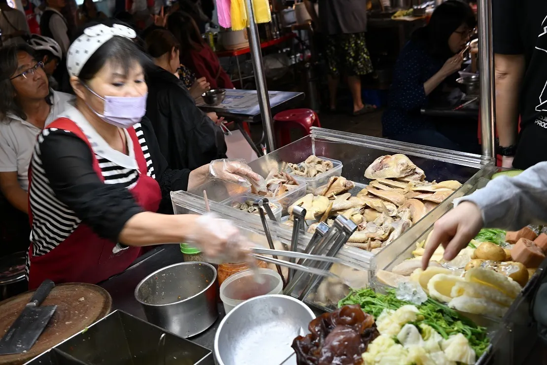私たちは、寧夏夜市で、一店目で、鶏飯と冬瓜あさりスープ、ニ店目で、まぜそばと牡蠣お好み焼きを食べました。