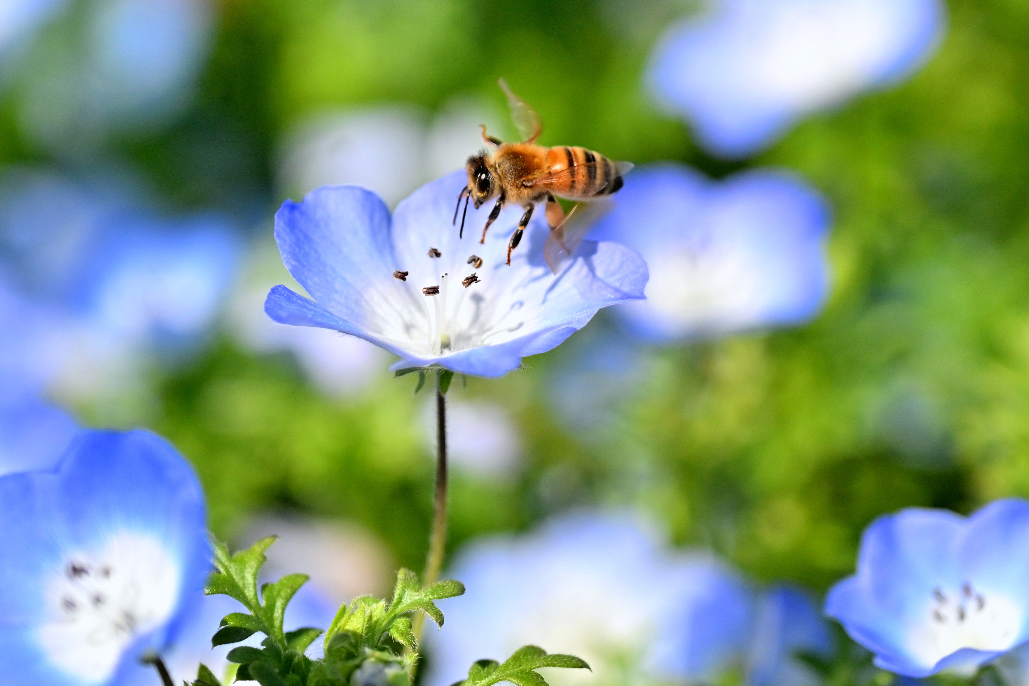 トップ > メンバーズ・フォト > 花・植物 > ネモフィラとミツバチ s-p-i 2026/04/14 23:33 ネモフィラとミツバチ 満開に咲いたネモフィラの花畑をミツバチが飛び交っていました。Nikon Z9 NIKKOR Z 24-120mm f/4 S1/6400秒 f/4 ISO800 ネモフィラ 蜂 いいね 共有する 共有する X facebook LINE リンクをコピー コメントする 0 件の返信 (新着順)