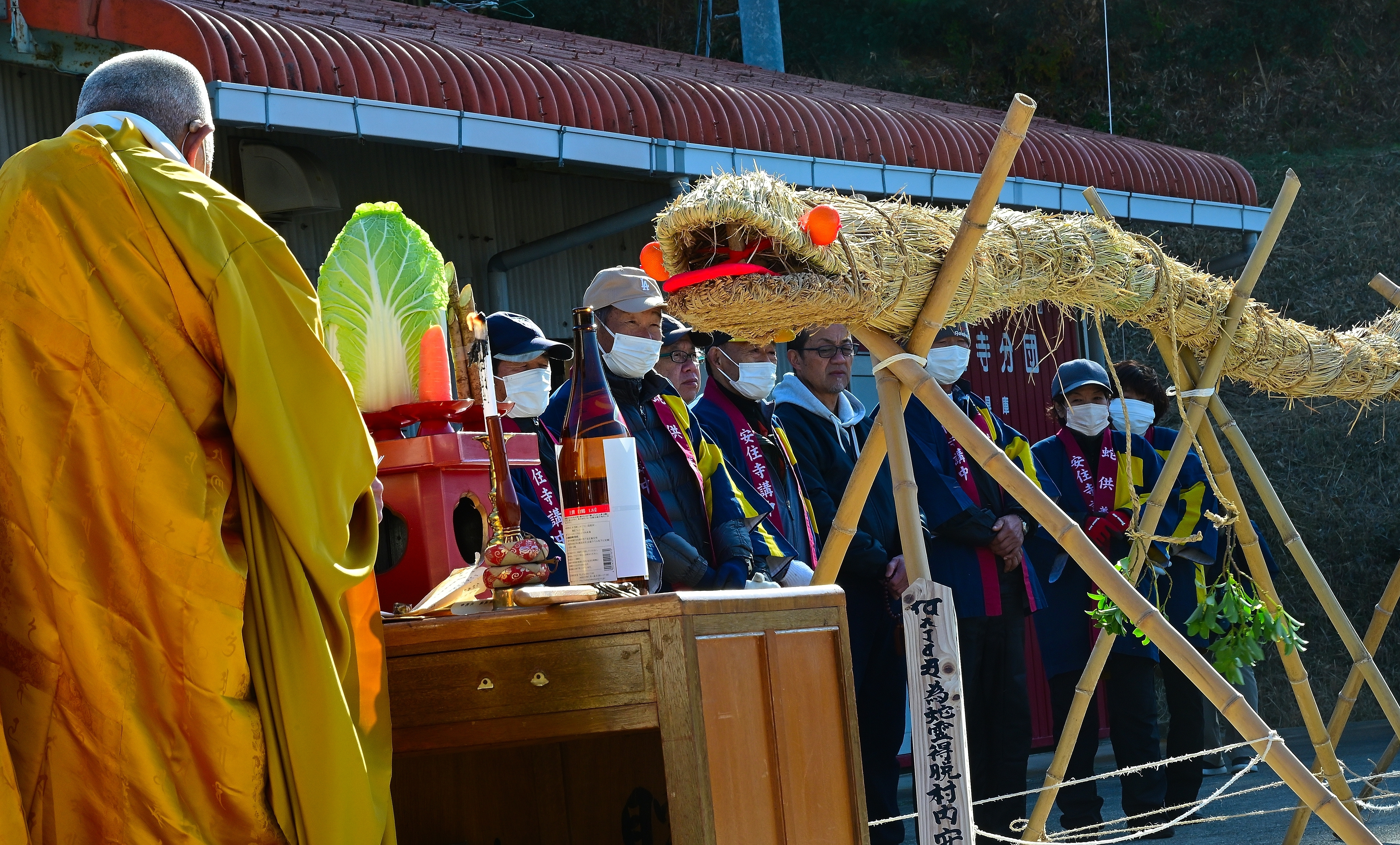 トップ > メンバーズ・フォト > 街風景 > 入魂 Hachiro 2026/02/09 07:09 入魂 淡路島の倭文(しとおり)地区では、藁で作った大蛇の祭りが行われます。長さ11メートルもの大蛇を作り、村中をねり、最後に旧庄屋さんの庭で村民に巻き付けて無病息災を願う平安時代から続く伝統行事です。祭りに先立ち住職が藁の蛇に魂を入れているところです。 いいね 共有する 共有する X facebook LINE リンクをコピー コメントする 2 件の返信 (新着順) ミュートしたユーザーの投稿です。 投稿を表示 遠山のタケさん 2026/02/09 13:38 本当に珍しいお祭りですね〜😄 儀式に神主や宮司ではなく、 ご住職がされるのですね😱 ヘビも凄いです〜 いいね 返信する ミュートしたユーザーの投稿です。 投稿を表示 Finder 2026/02/09 09:48 日本には色々なお祭りがあり、それぞれの地域に根付いた歴史文化などがその祭りに昇華されているような面がありますね。これだのお祭りを行うのは、日本だけかもしれませんね。珍しいお祭りの様子をありがとうございます。^^ いいね 返信する
