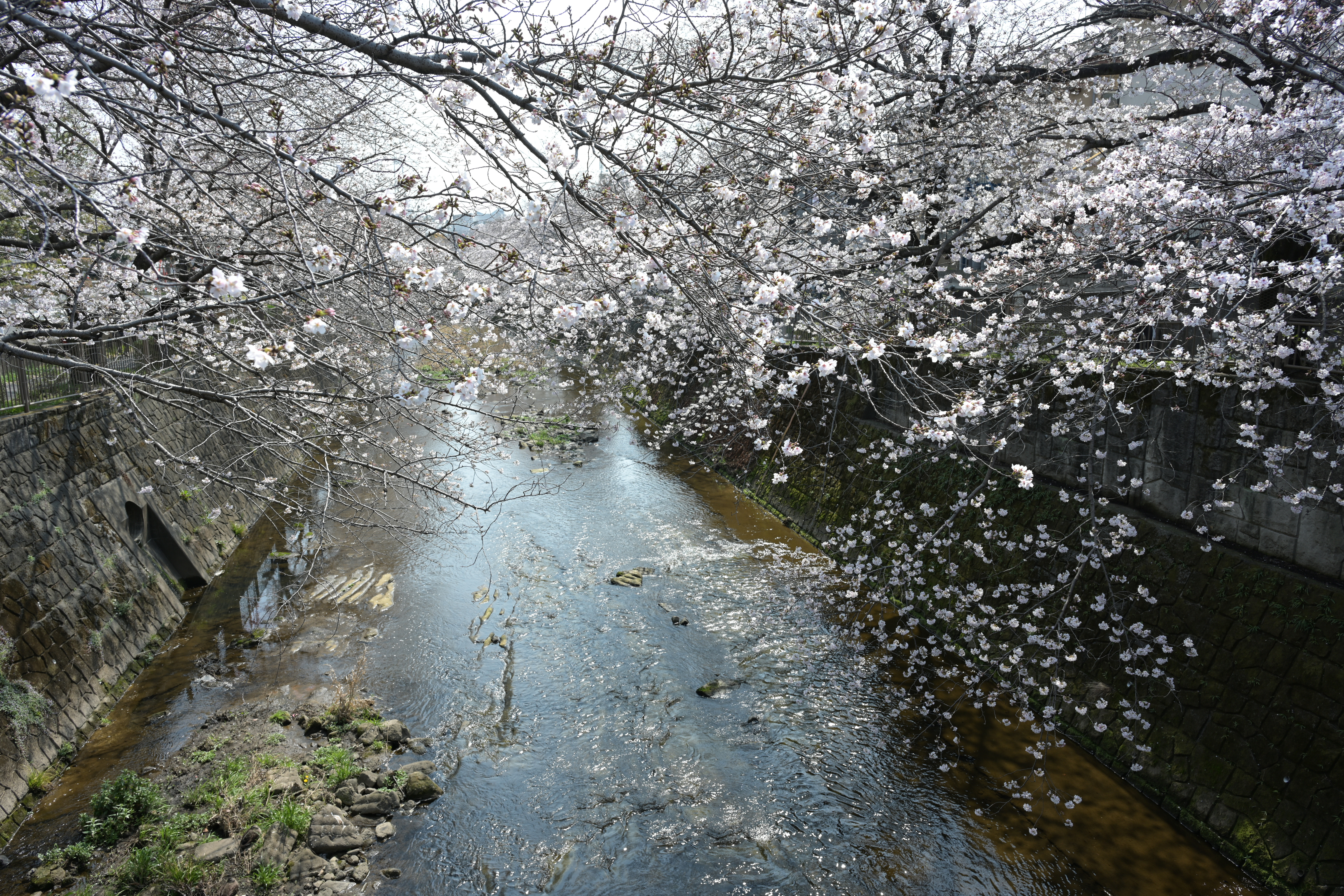 桜の枝が川に垂れ下がっている姿を見事に捉えていますね。青空を映して川の色が青みがかっているのも「いいね」です👍