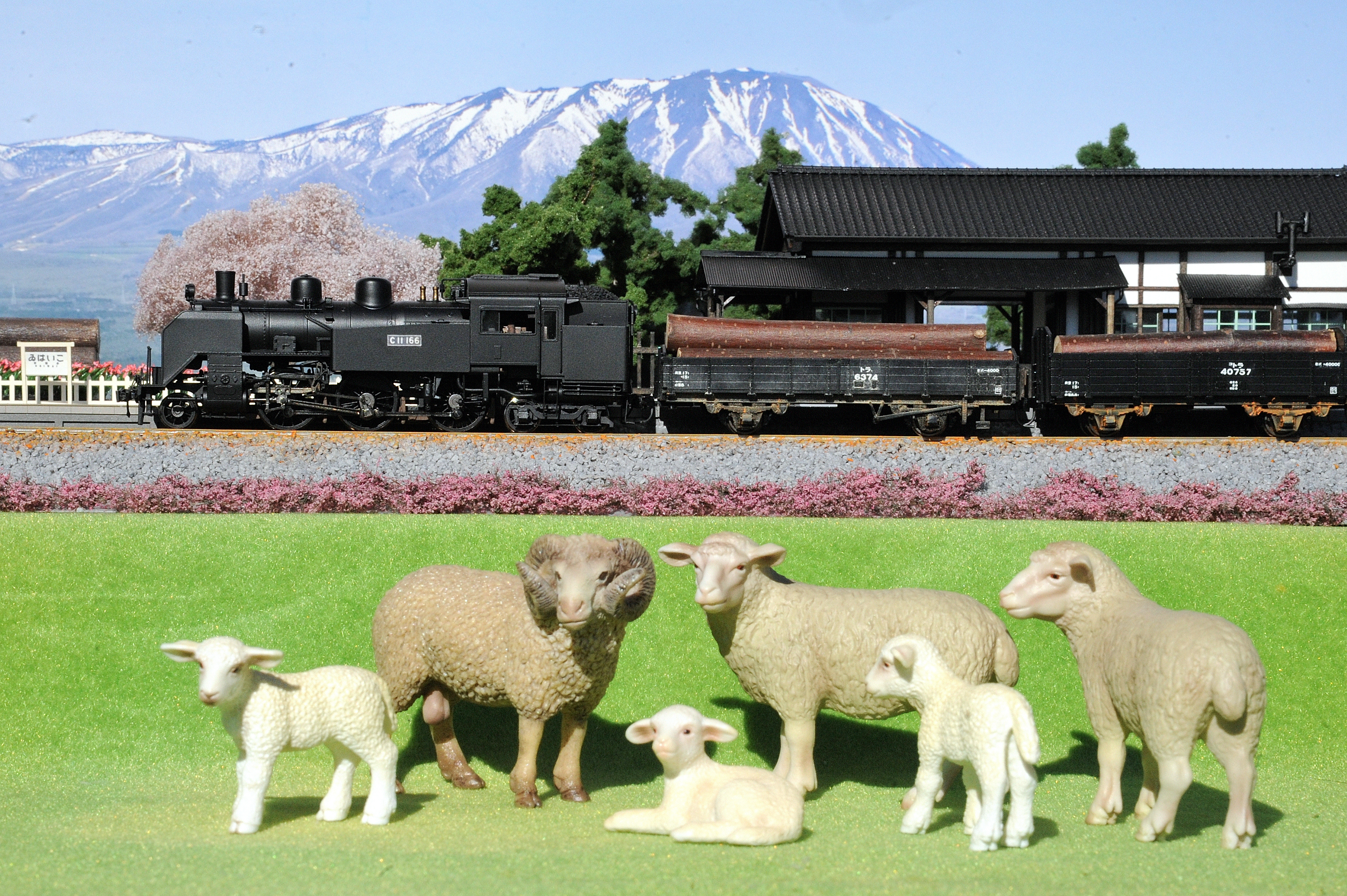 車両は1/87スケール、背景はカレンダー、羊はPreiserです。