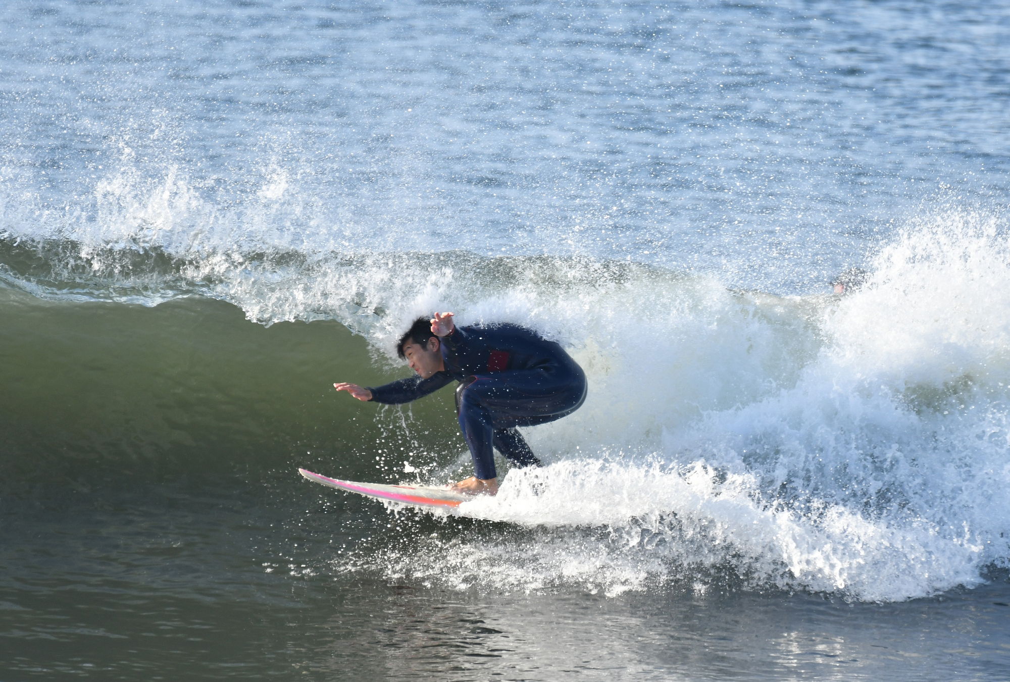 私が見る時には、高い波が少なく、波待ちのサーファーが多いのですが、こんな日に行くと絵になる瞬間を撮影出来そうですね。私も又、撮影して見たくなりました。^^