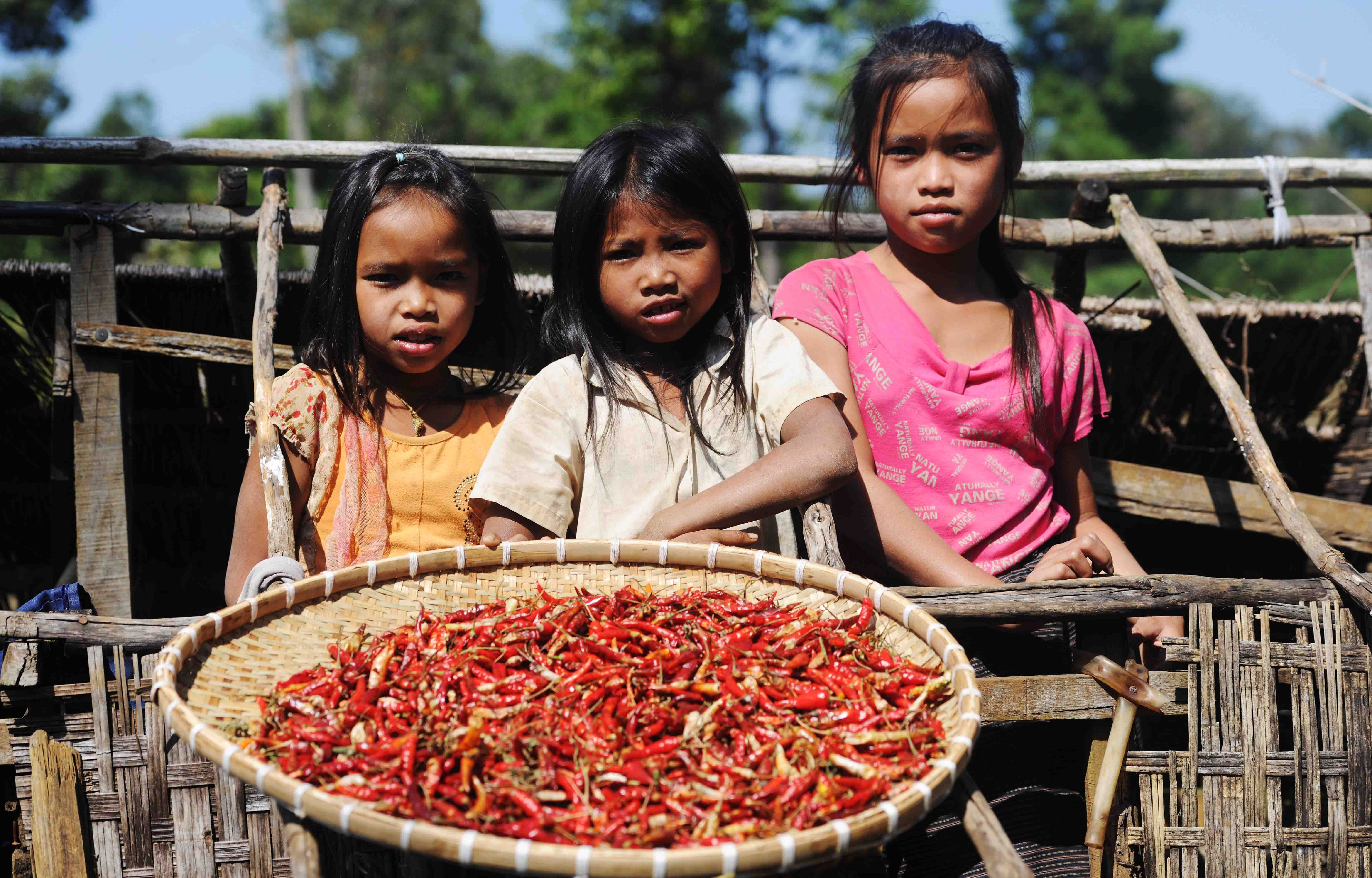 投稿を表示赤い唐辛子を干しているんでしょうか、素直な純なお顔が3つ。可愛いですし、将来の美人は間違いなしの3人ですね。