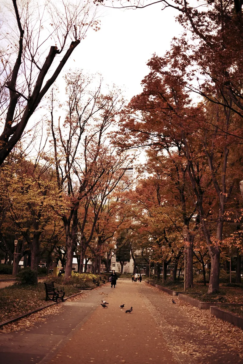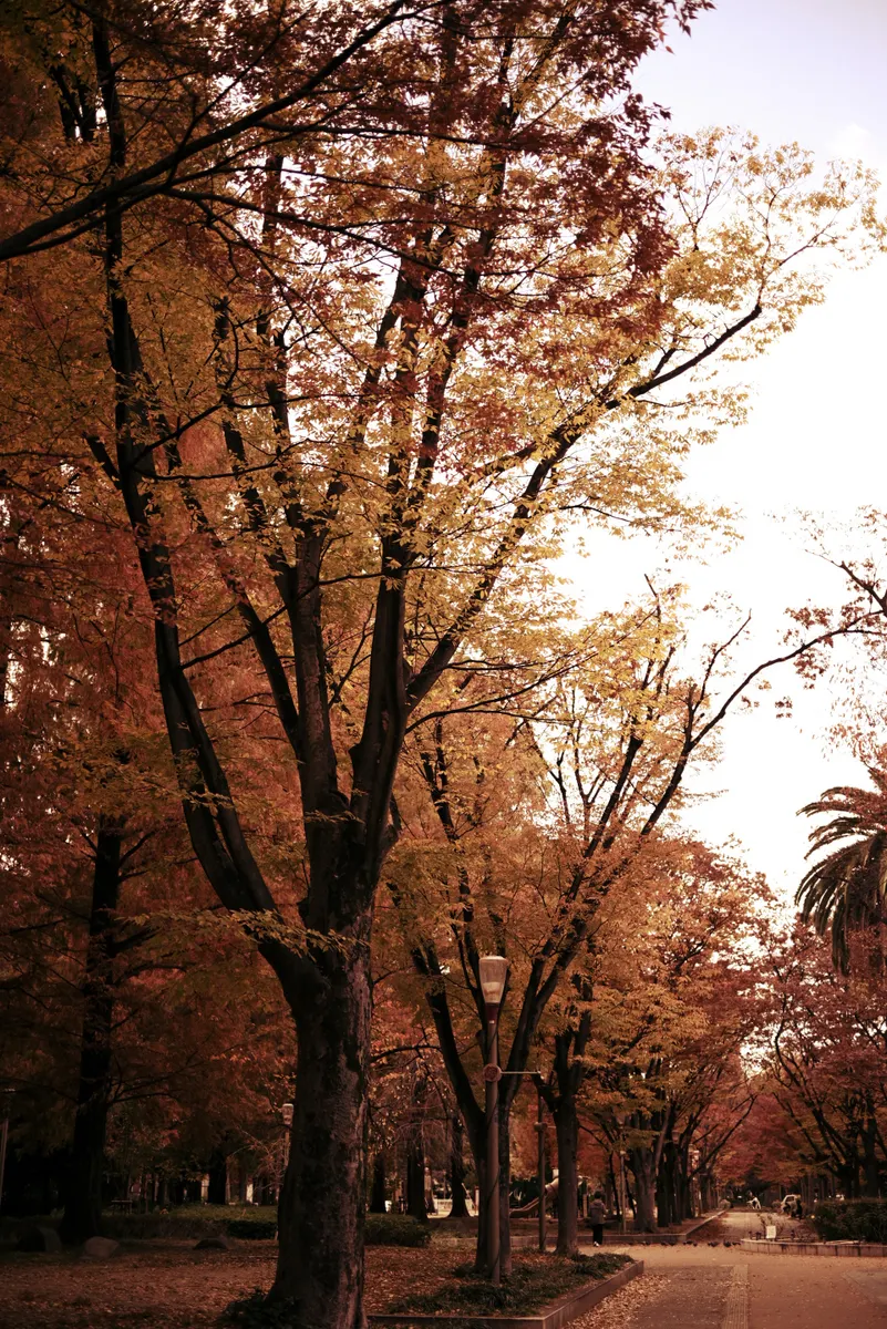 12/4に秋薔薇撮りした帰りに、この欅もみぢの並木道をピクコン:レッド(適用度 50%)で撮りました。