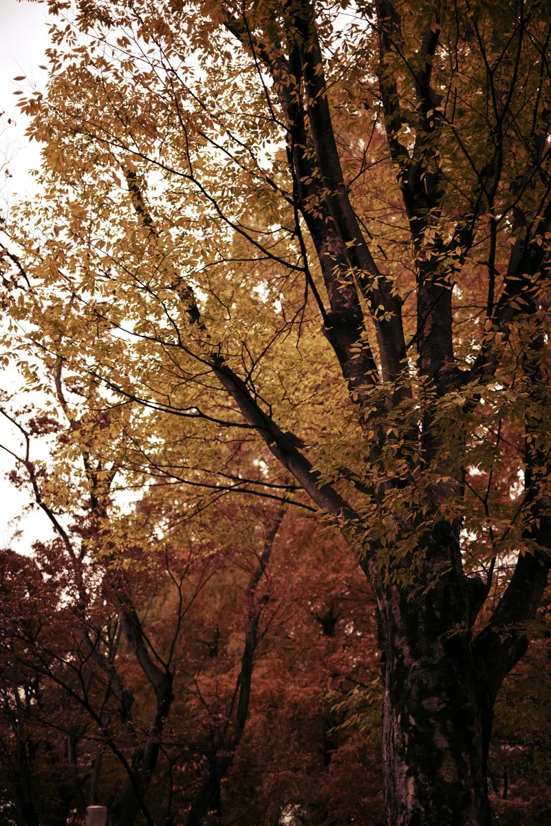 紅葉した赤・黄色が主体の景色をピクコン:レッドで撮るのもどうかと思いましたが、ファインダーをみたら思いのほか落ち着いた雰囲気が出ていて気に入ってしまいました。