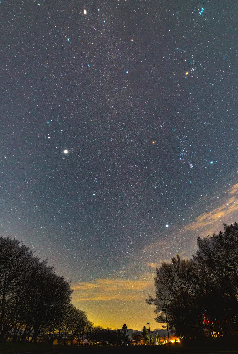 投稿を表示美しい冬の星座が輝く星景作品、素敵ですね~。地上の木々が繁る風景と灯かりが星空がとてもバランスよく捉えられているよ思います。素晴らしい作品です。^^
