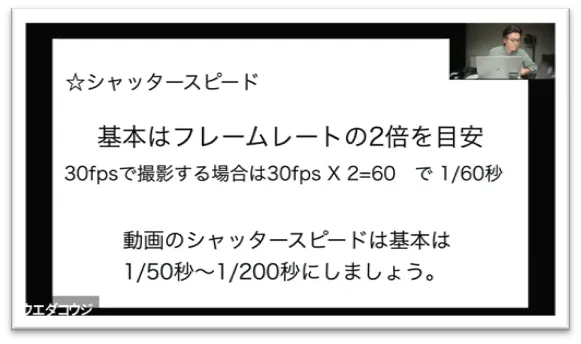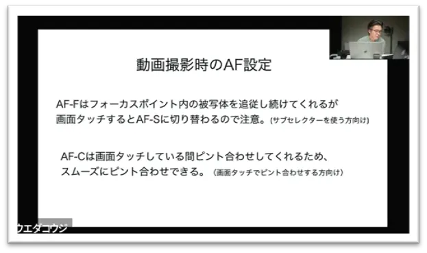 動画撮影に関する基礎の部分を上田先生に解説していただきました。