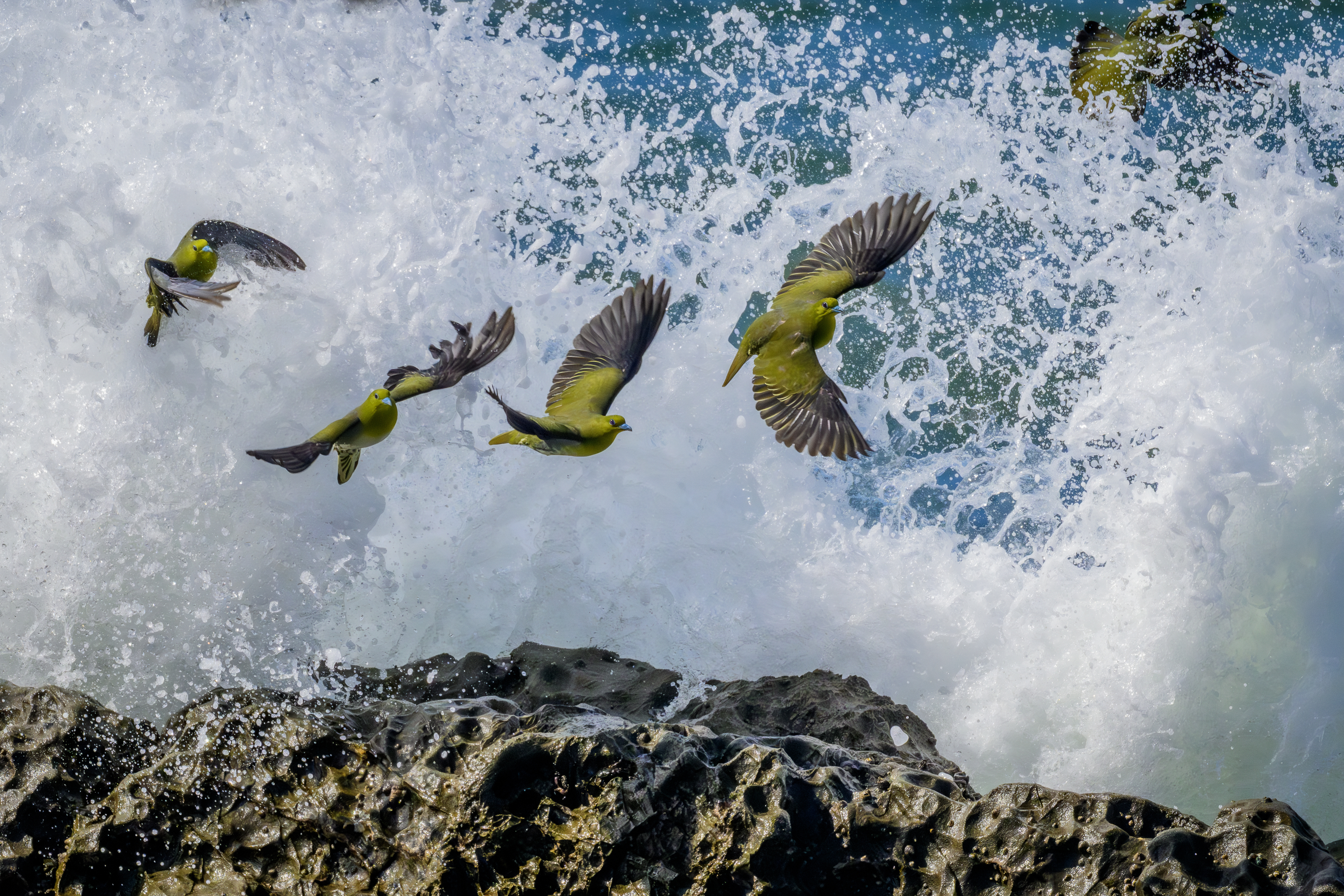 投稿を表示波しぶきに負けないアオバト迫力満点です。