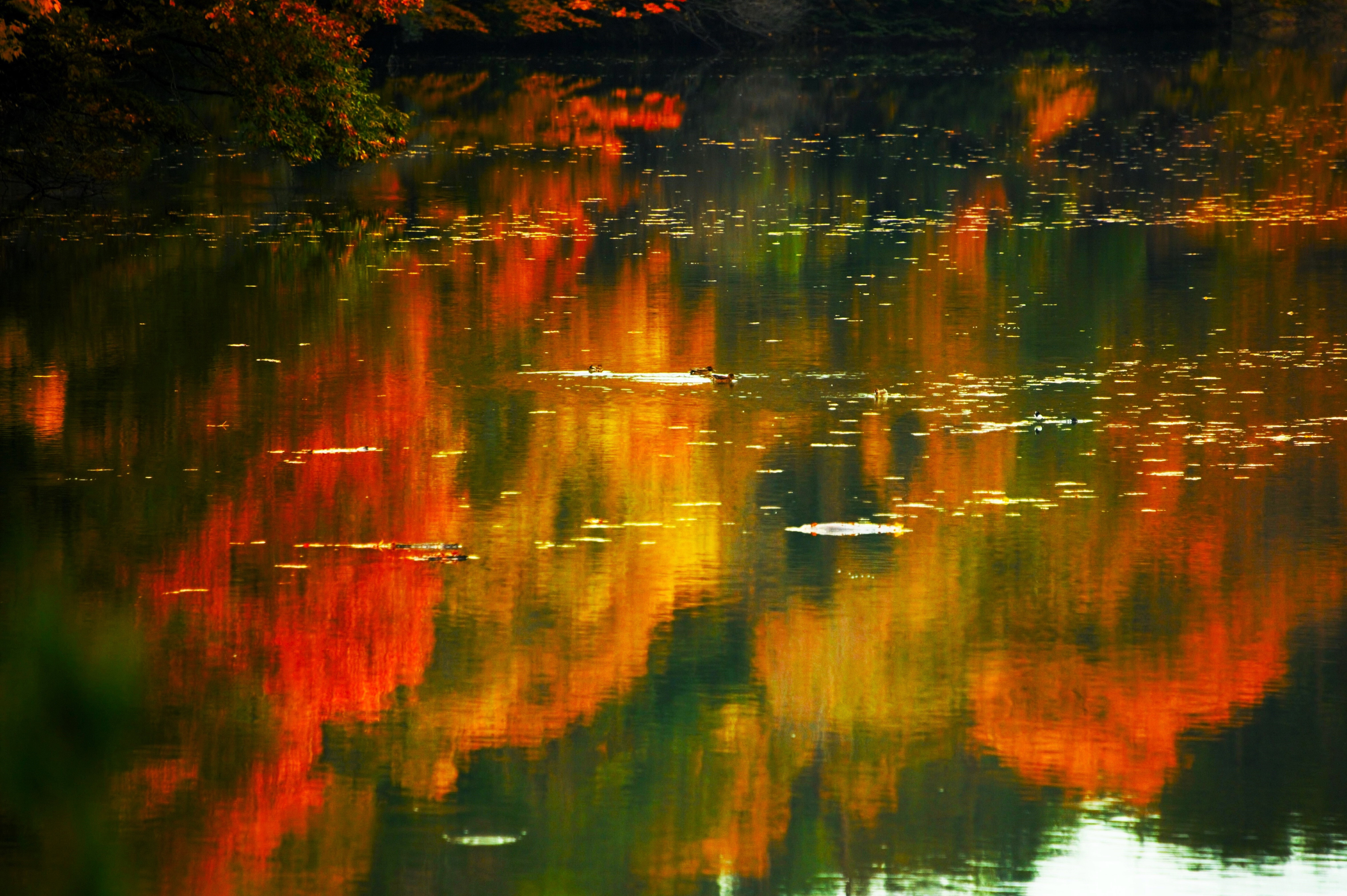 水面の揺らめきが素敵で、その中に光るのは太陽光の反射でしょうか。