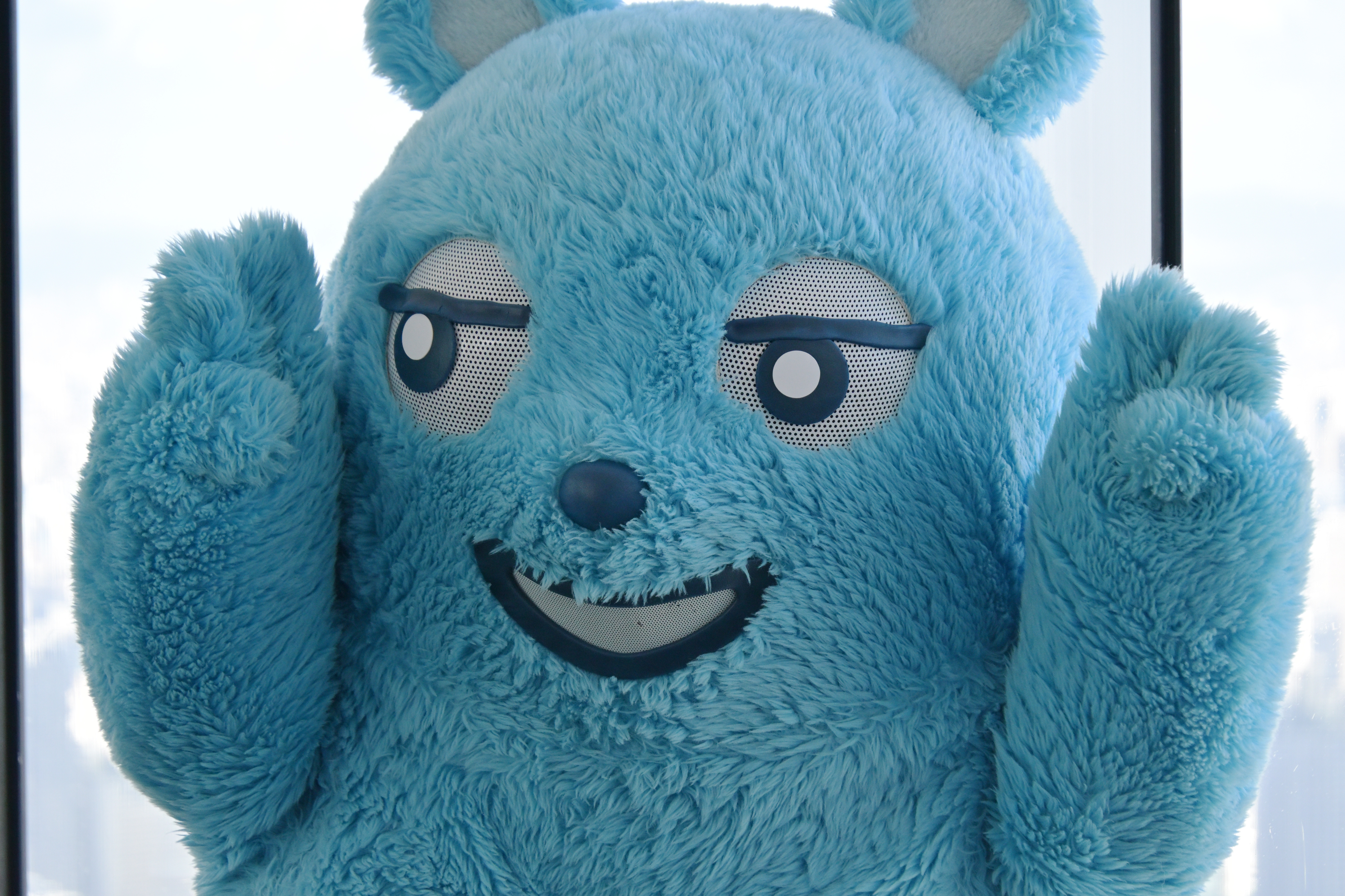 アイキャッチ画像に登場したあべのべあは、58階のカフェエリアでお茶した後に、60階に戻ってきたらあべのべあ(本物)が居て、みんなで記念撮影してました。その様子を遠目からパチリと撮ったものです。