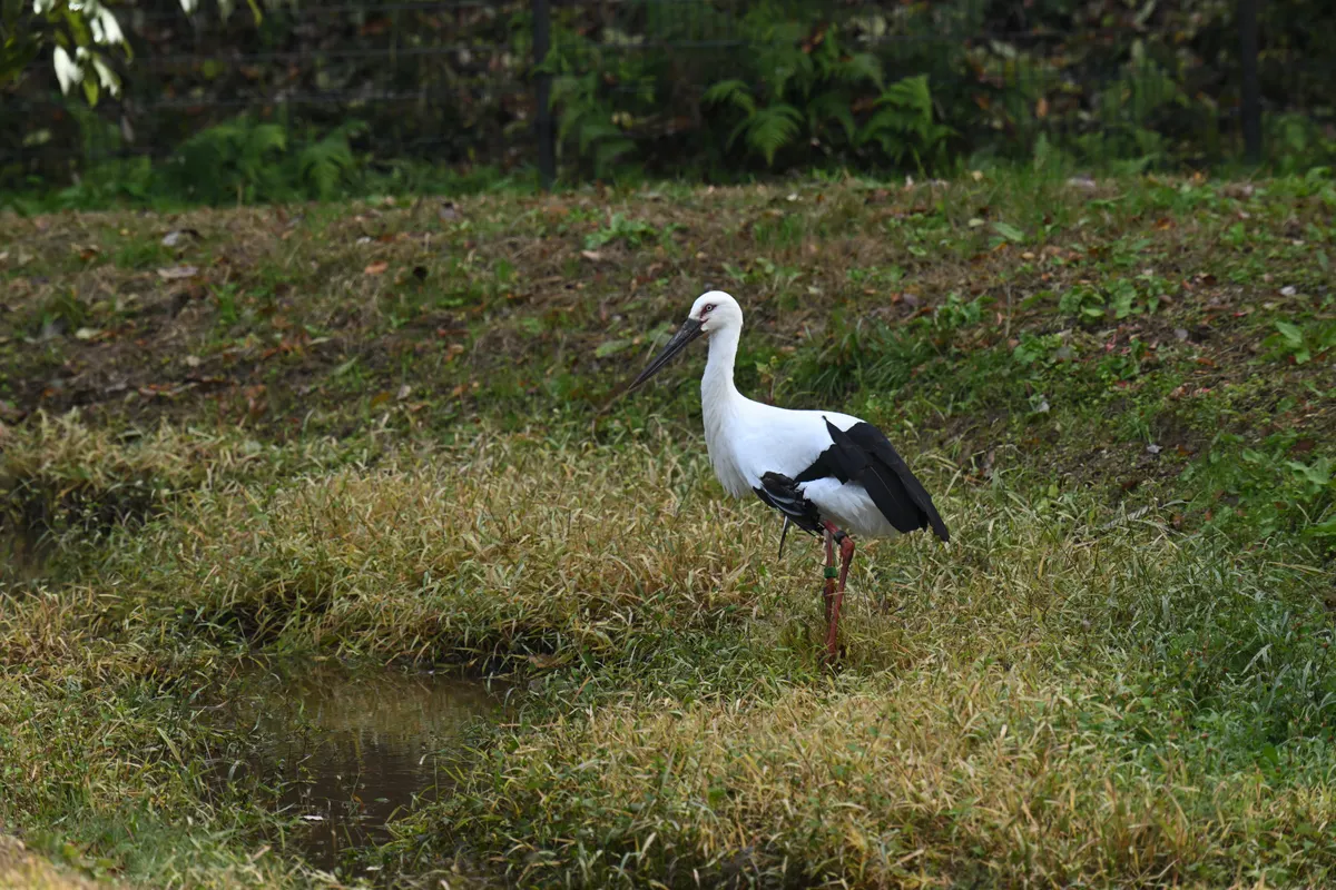 こちらは観察広場内のケージで飼われているコウノトリです。観察広場では常時数羽のコウノトリがいますが、自然の状態でいるのは人工巣塔のつがいや市内の田や川にいるコウノトリで市として無農薬でコメを作るなどコウノトリが育つ環境を守るようにしているそうです。
