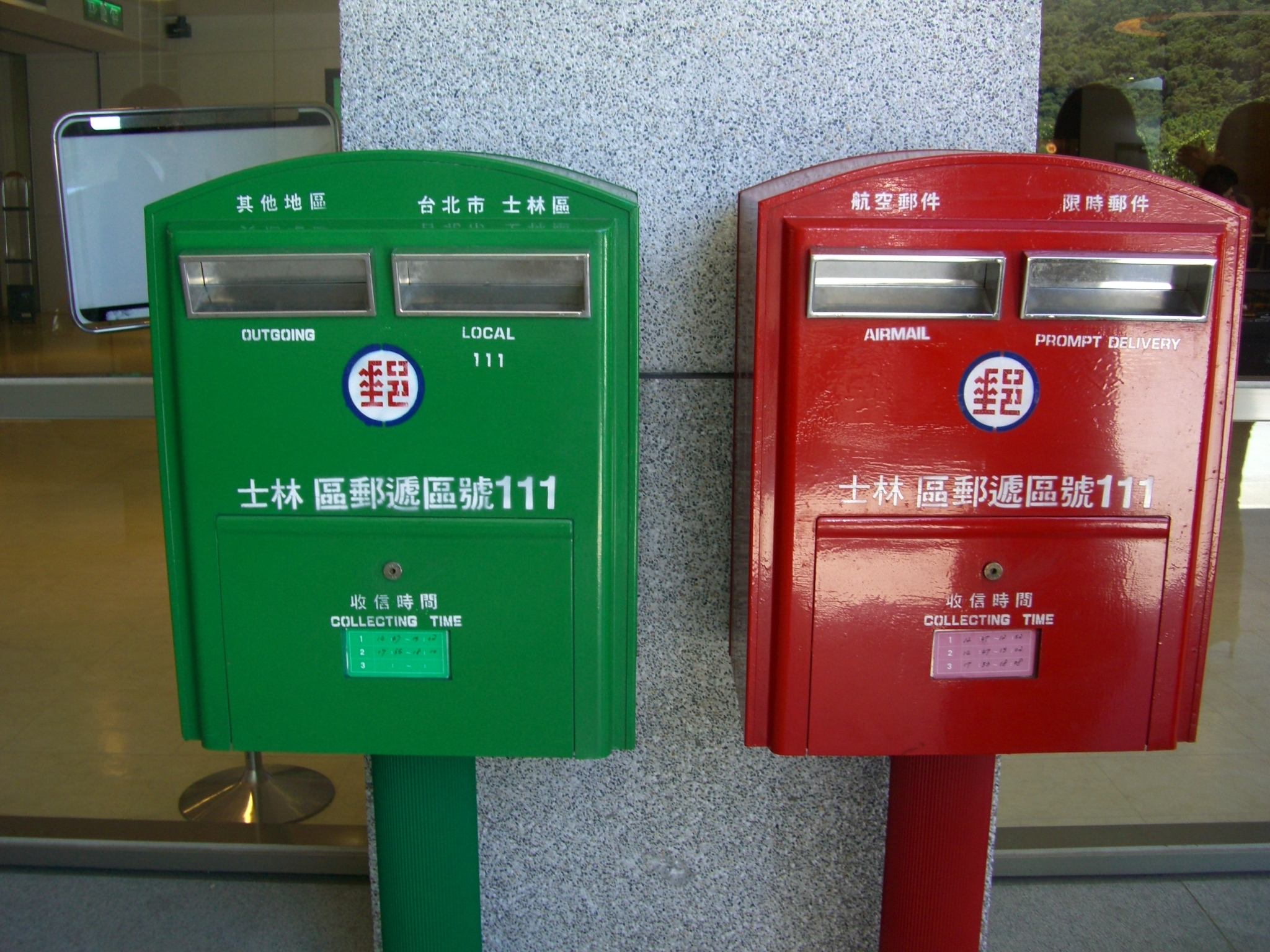 投稿を表示台湾のポストは、「エアメール、速達」と「市内、市外」で色違いなのですね。角型のポスト、何故かお顔に見えてしまいました。^^