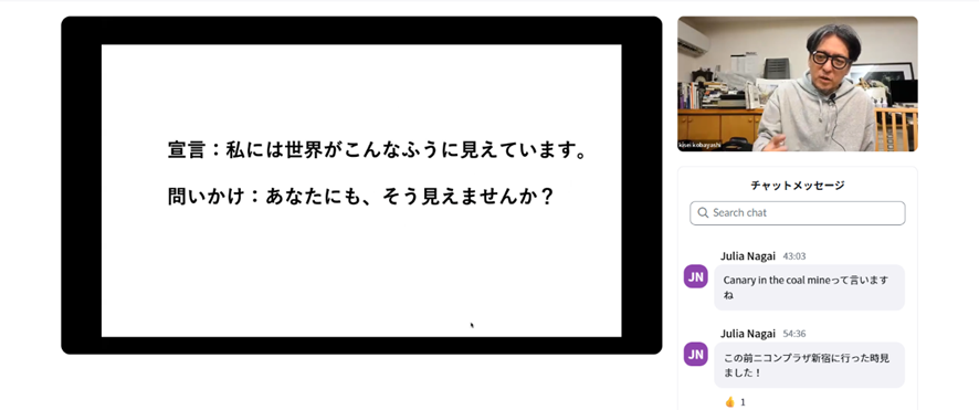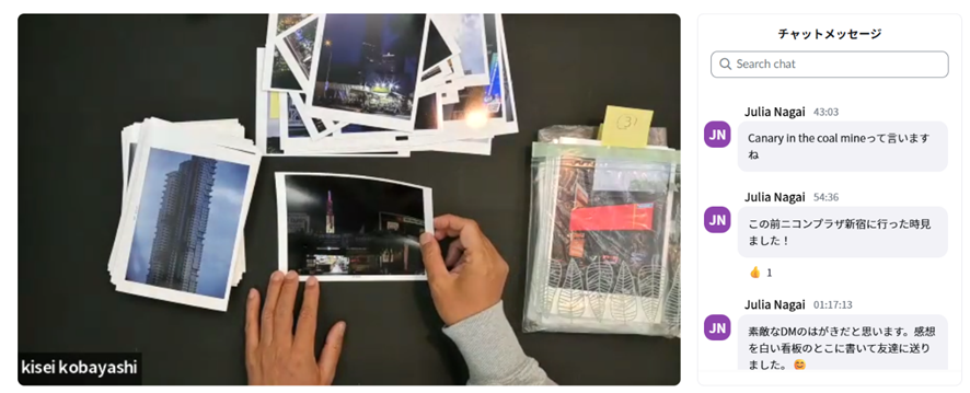 小林先生はこの写真展で伊奈信男賞を受賞されました。「挑戦を続けていたが最後の最後で落ちるパターンが多く今回は運が良かった。賞は狙って取れるものではない」とお話いただき、作家として作品と日々向き合い挑戦を続けられている小林先生、次回の写真展をぜひ拝見したい気持ちになったオンラインセミナーでした。