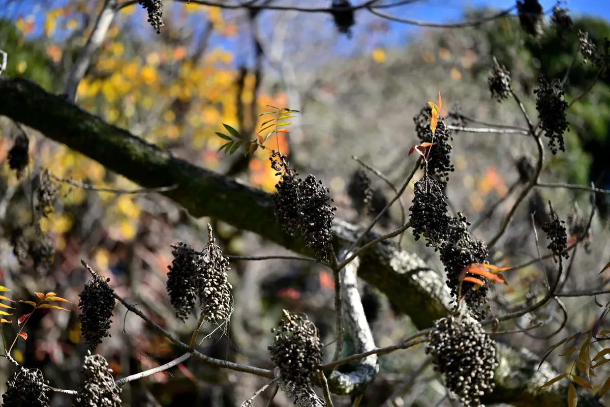 投稿を表示一番最後の櫨が赤い葉、黒い実のコントラストが良いですね。近寄るだけでカブレるこのような実から樹液を取り出し漆を作るなんて先人の知恵はすごいですね。
