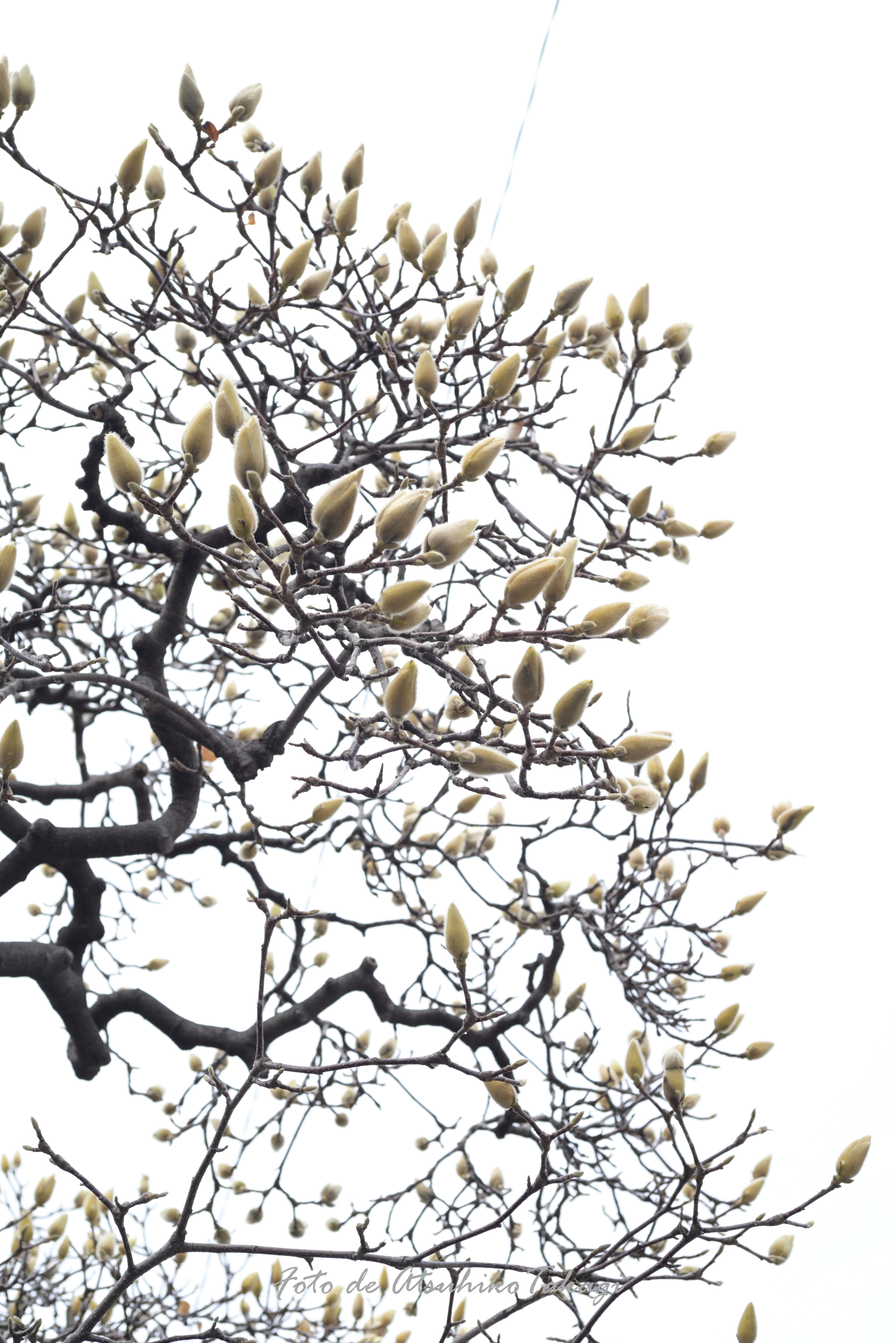 開花間近なハクモクレン(白木蓮)です。