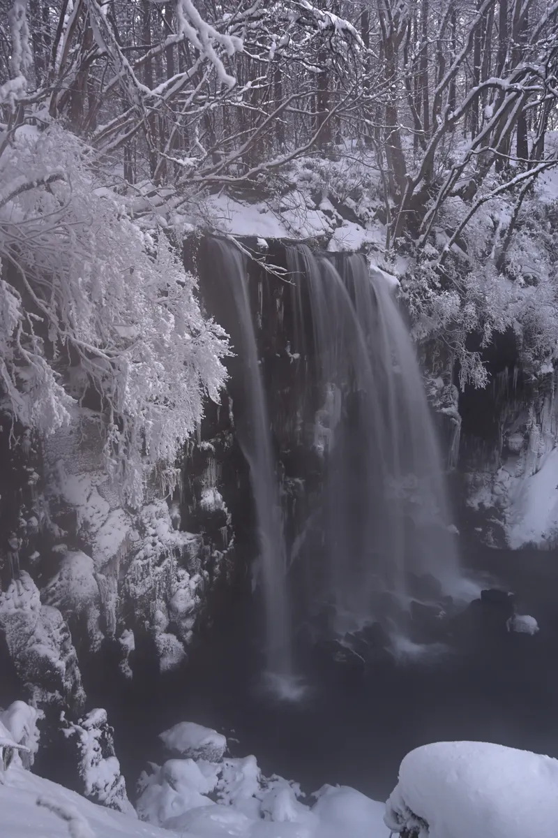 前回に続いて本番2回目の撮影です❗️吹雪が明けた早朝の唐沢の滝の様子です😊