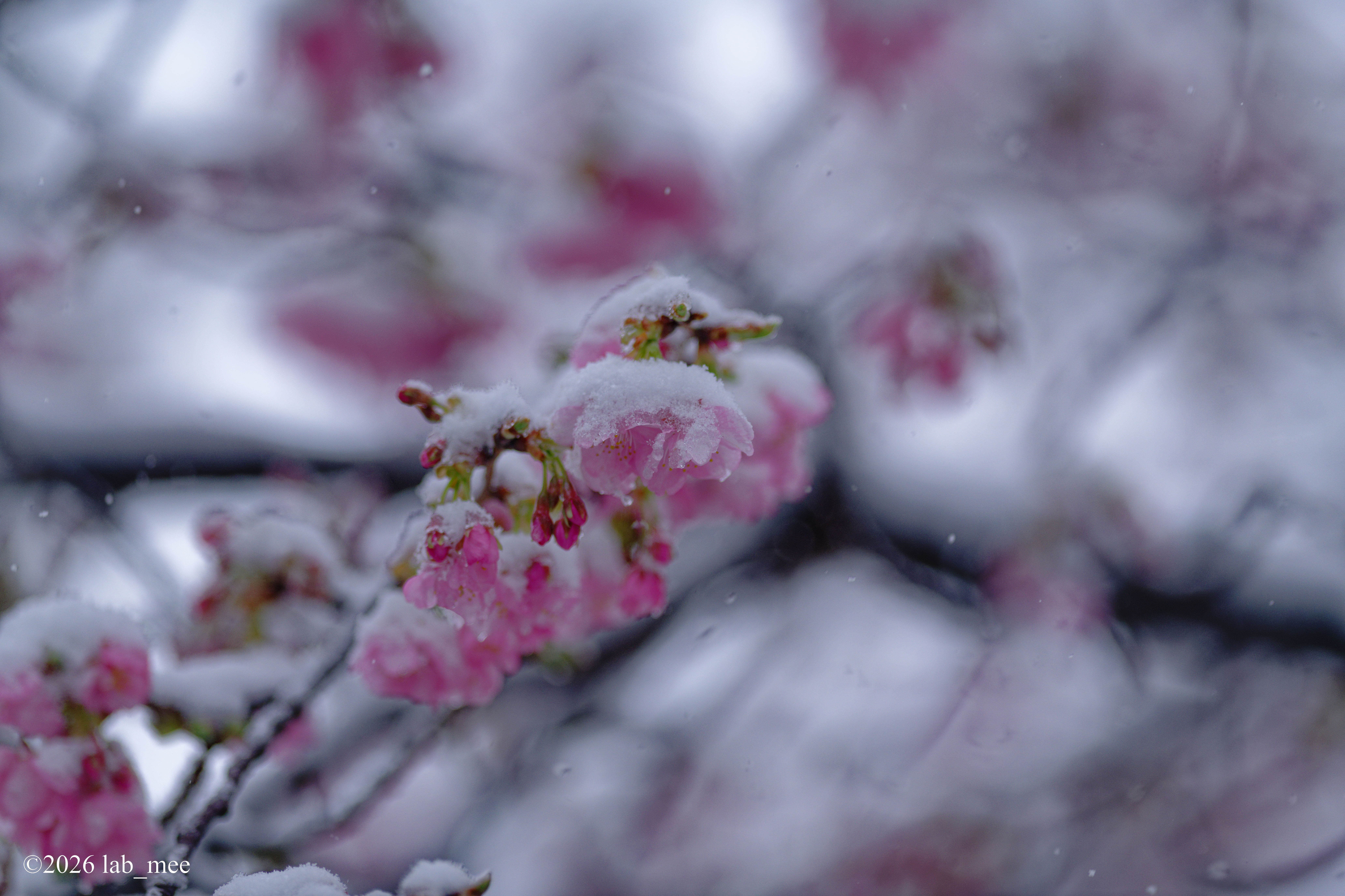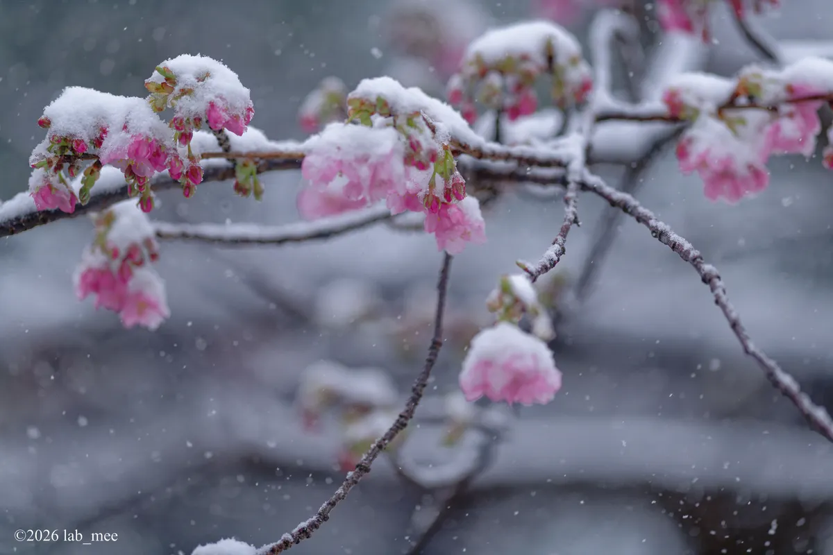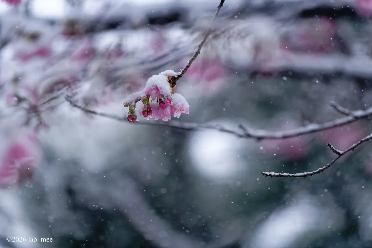 投稿を表示美しい冬色ですね~、雪の降る中の撮影、大変だったと思いますが、美しい作品としての結果はそても素晴らしいです。梅も河津桜も、この時期に咲く花なので雪が降る事は承知の上で咲いているという事ですよね。椿も山茶花もそうですが、なにかに例えて作品として昇華出来る様な気がしました。^^