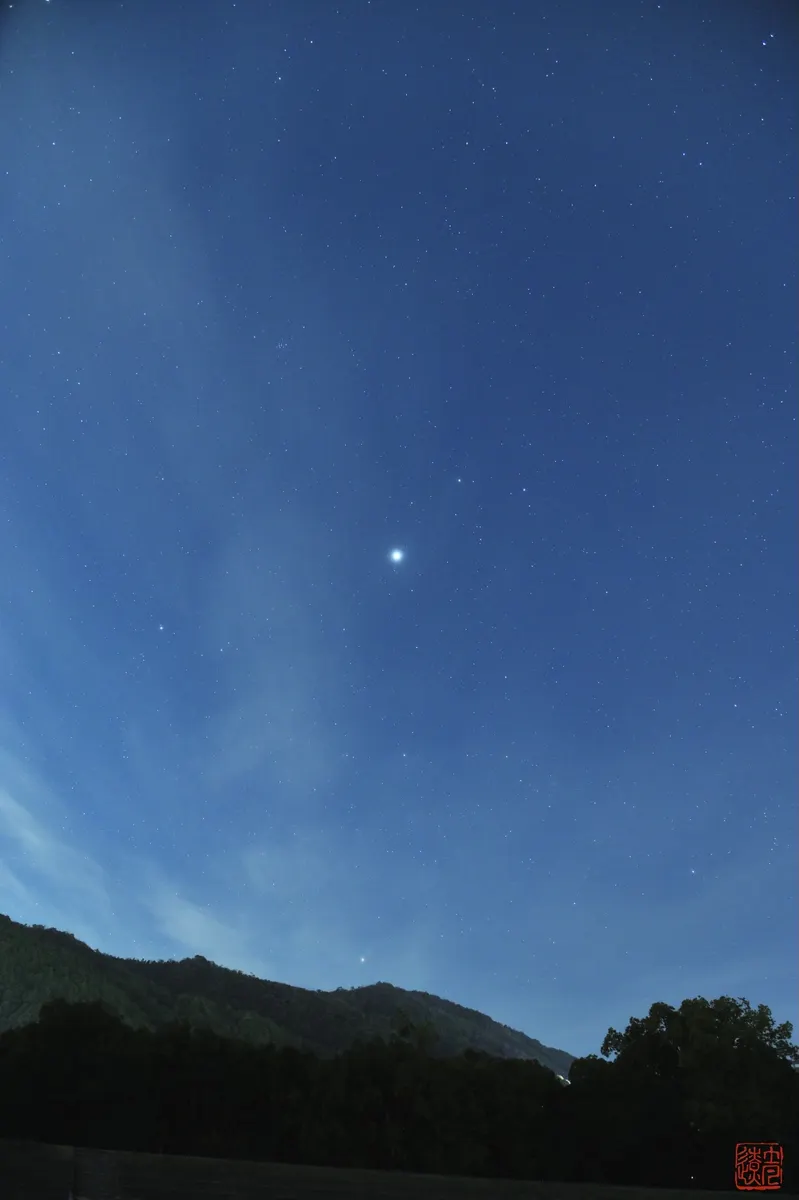 今年最後の星撮りに行ってきましたが、満月間近の月が沈んだ後の夜明けの夜空に、双子座に一際輝くJupiter(木星)を捉えました。冬空のため、水蒸気が星を邪魔していて、星景写真としてはあんまり良くありませんが、星の見える風景写真として今年最後の供覧とさせていただきます。