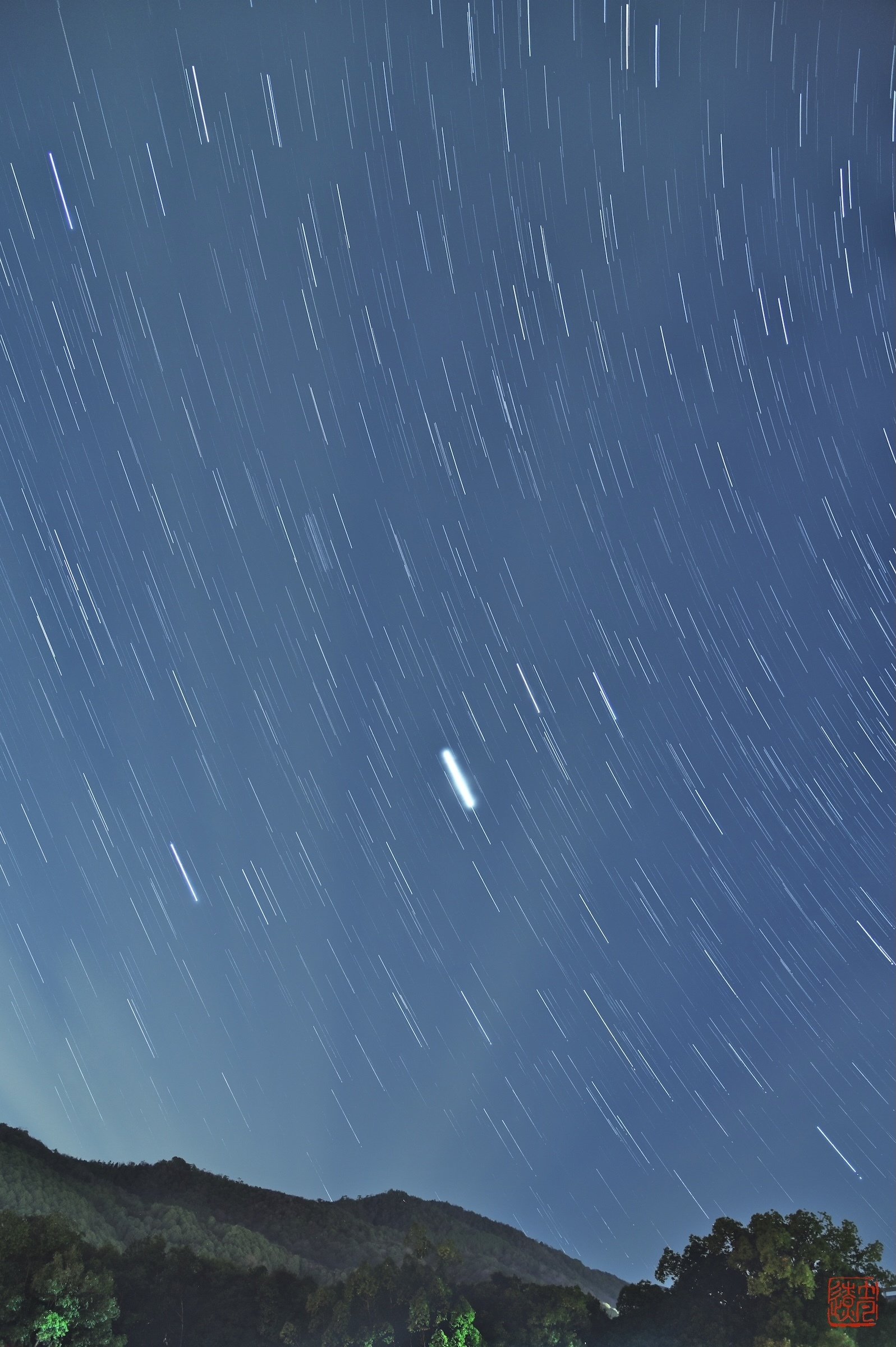 D780、AF-S VR 24-120mm f/4G、24mm、f/5、ISO 800, 15sec x 50frame、Gimpで比較明合成