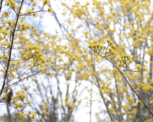 写真は、Mapに記載のない花の谷のサンシュユ