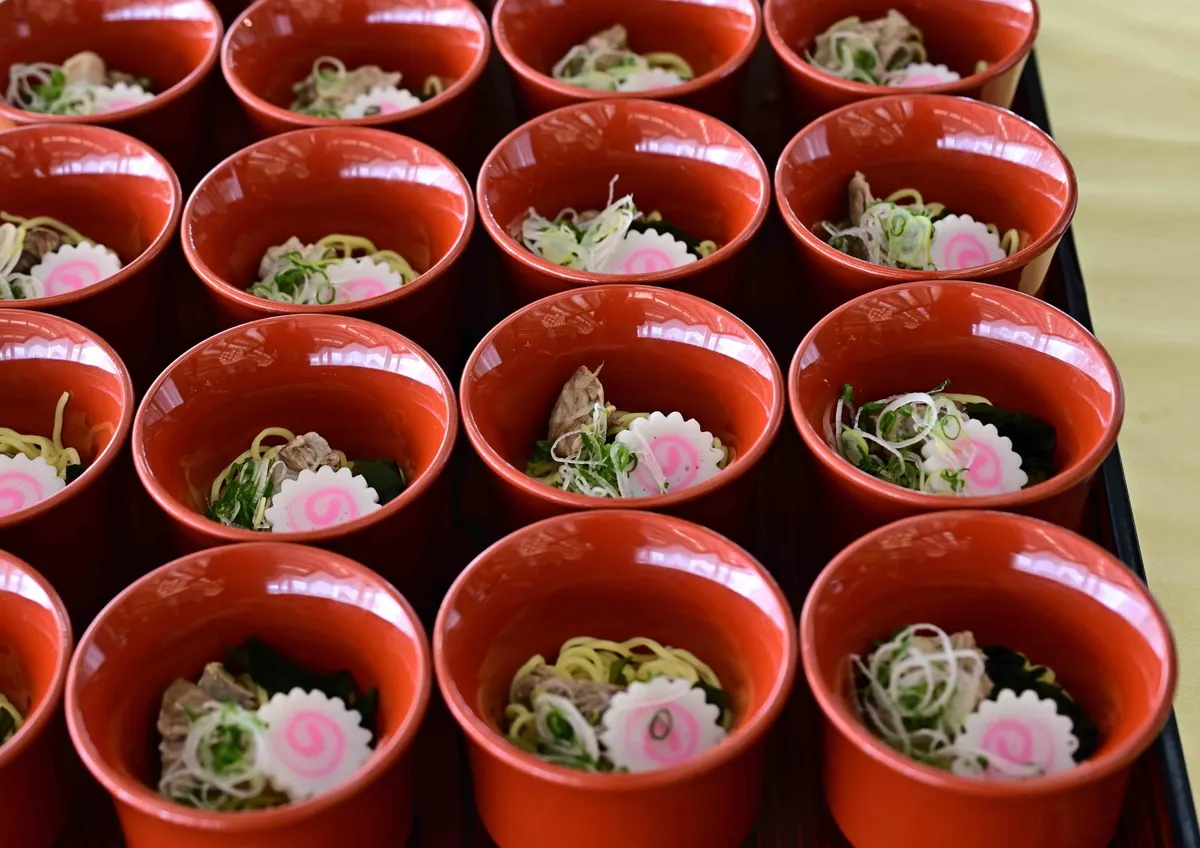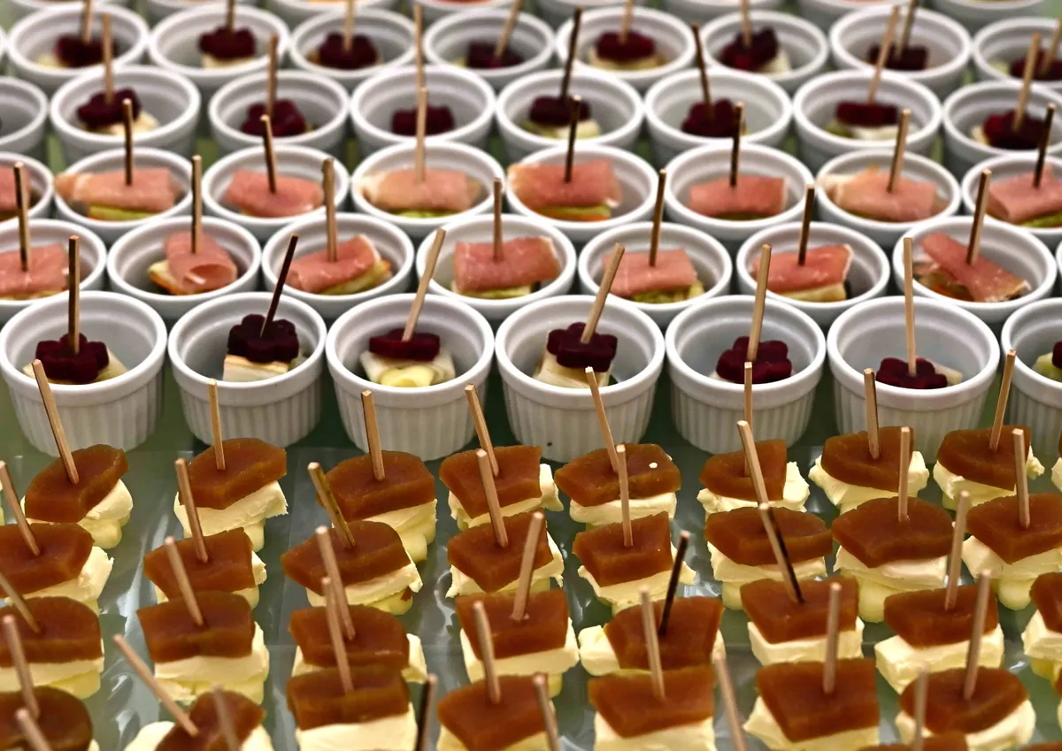一糸乱れず整然並べられた料理の数々に、大変心を惹かれました。勿論美味しかったです。(私どもも会費を払って、食事とイタリアオペラ歌手の独唱を、舌と耳で堪能しました)