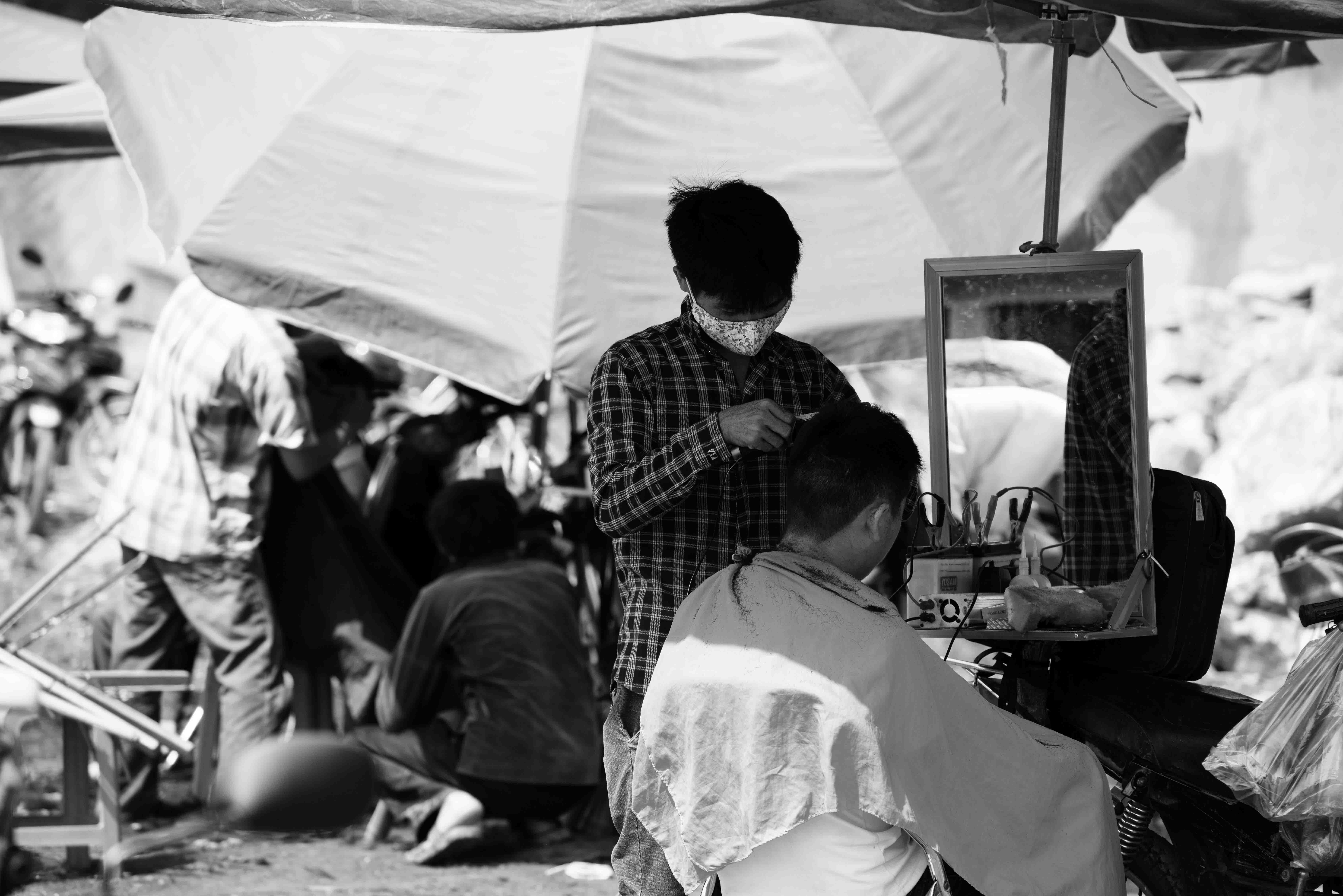 投稿を表示野外の散髪屋さんの光景ですね。懐かしいですね昭和30年代半ばまで、日本のあちこちで見られました。無論保健所の無許可ですが、腕は良かったですね。友達がしているのを傍で見ていたのが懐かしく、日本の高度成長とともに法律の執行が厳しくなり、闇の歯医者や散髪屋が消えていき、物価が高くなった記憶があります。技術は耳の中の毛を剃ったり芸術的な技術を持っていましたね。
