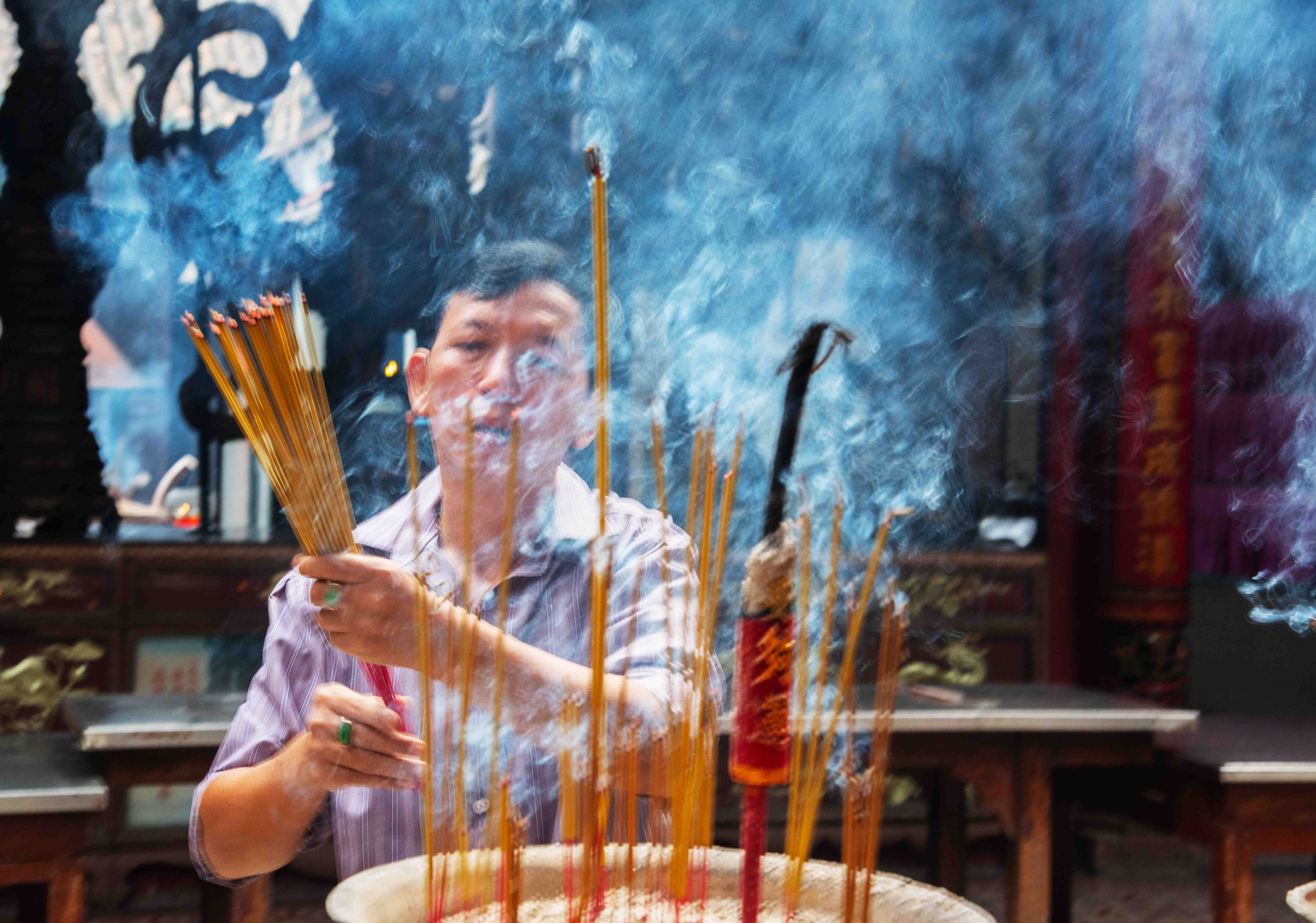 投稿を表示チョロンのお寺でしょうか?お参りに沢山の人が来ていますね。そんな様子をナイスショットです。ティエンハウ寺、オンボン寺又は、クアンナム寺のいずれかですね。このお寺の中を撮った作品もありますが、他社製カメラで撮っていますので投稿できないのが残念です。^^