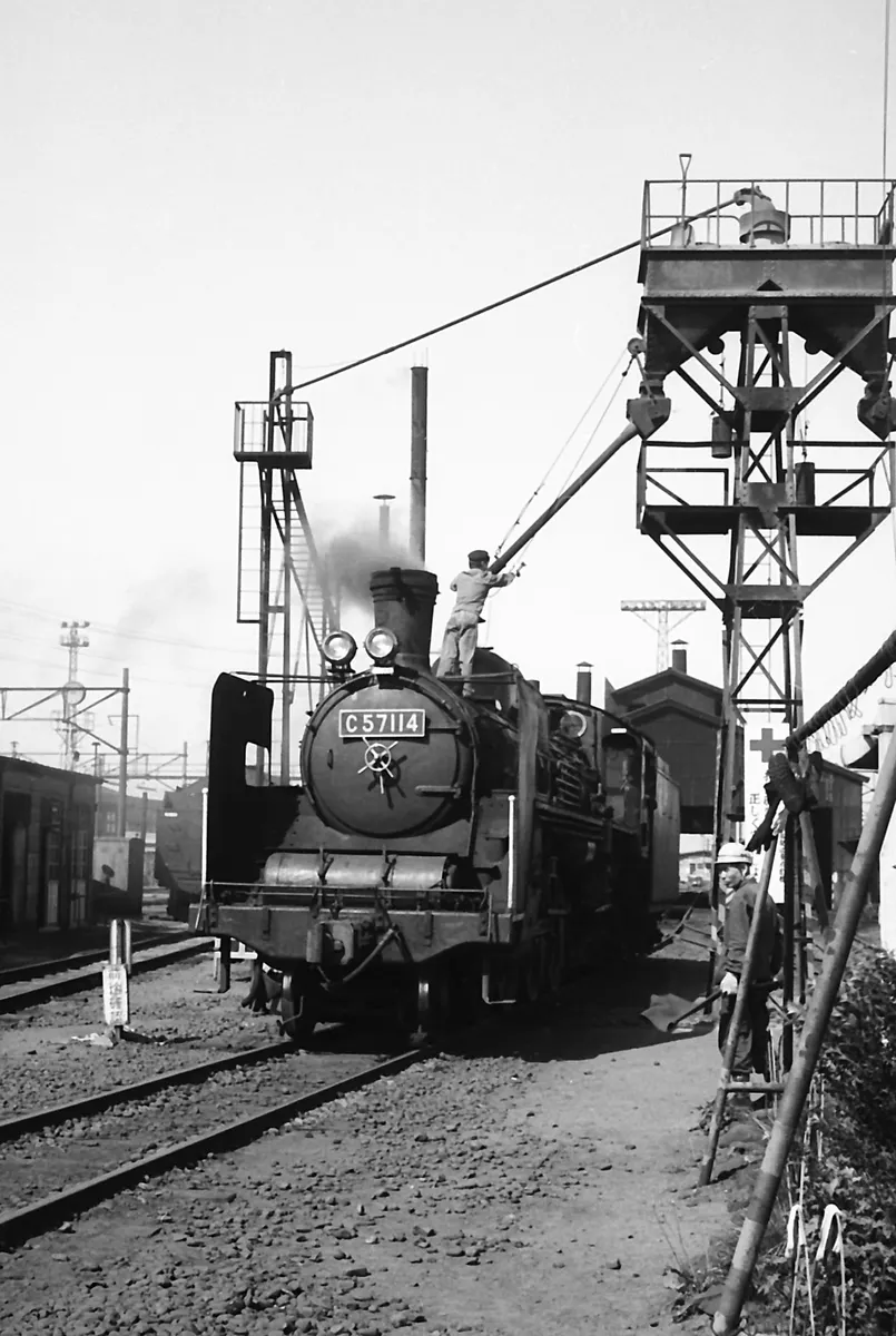 2枚目は、給砂塔から空転止めの砂の補給を受けているC57。