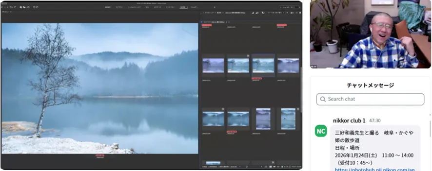 この作品は、12月14日のオンラインセミナー当日に撮影されたものです。三好先生の予想よりも雪が少なく、また改めて訪れたい場所とのことです。他の撮影者がいなかったため、非常に静かな空間だったそうです。