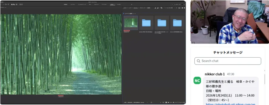 次回のワークショップ撮影地となります。オンラインセミナー後、満員となりました。誠にありがとうございます。三好先生曰く「全国の竹林を訪れたが、ここが一番自然で美しかった」とのことです。今回残念ながら参加が叶わなかった方も、機会があれば訪れてみてはいかがでしょうか?ご参加いただく皆さま、どうぞお楽しみに!