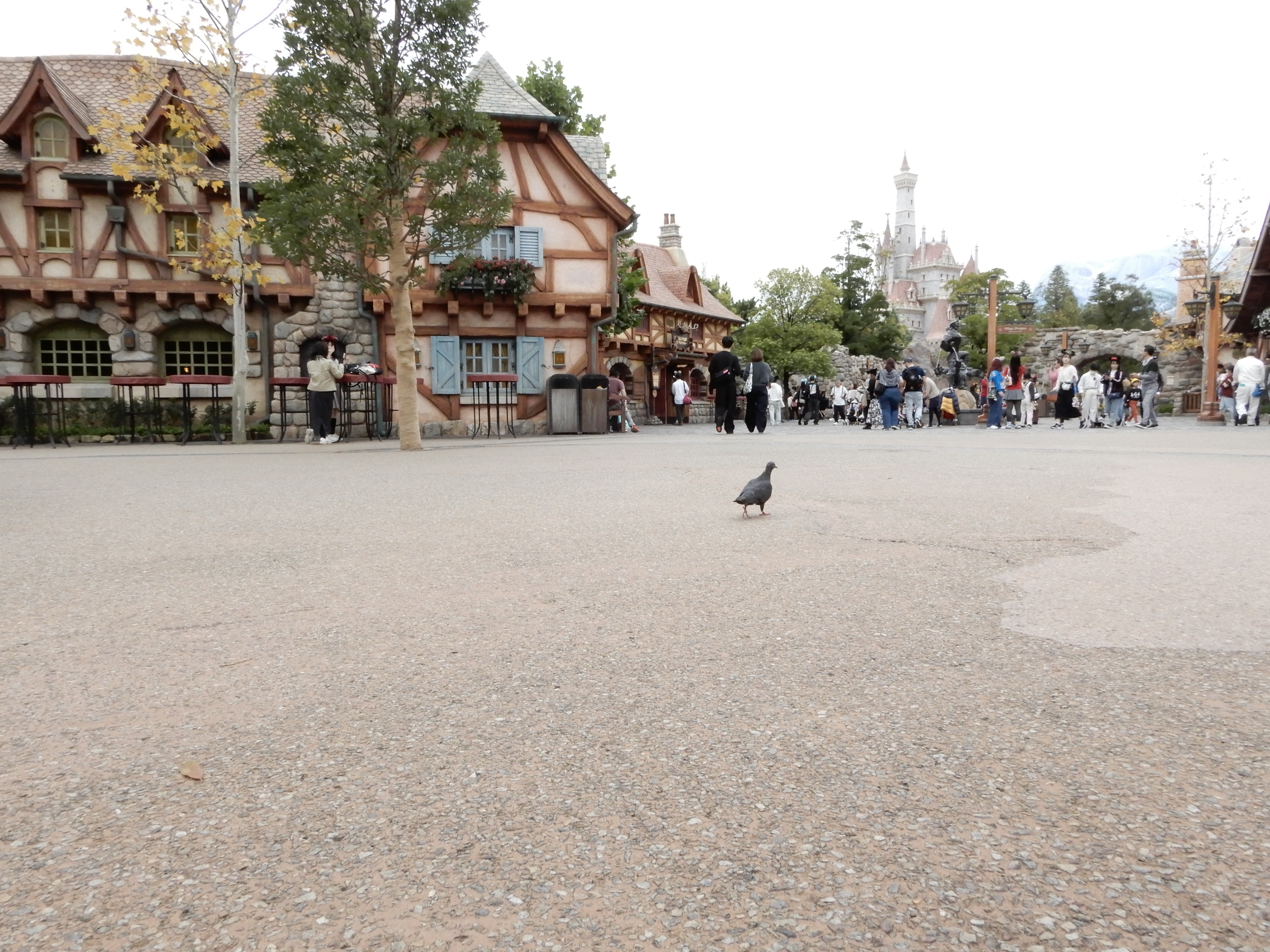 コメント:某テーマパークをのんびりお散歩中のハトさんです。小さすぎて見にくいですが、
