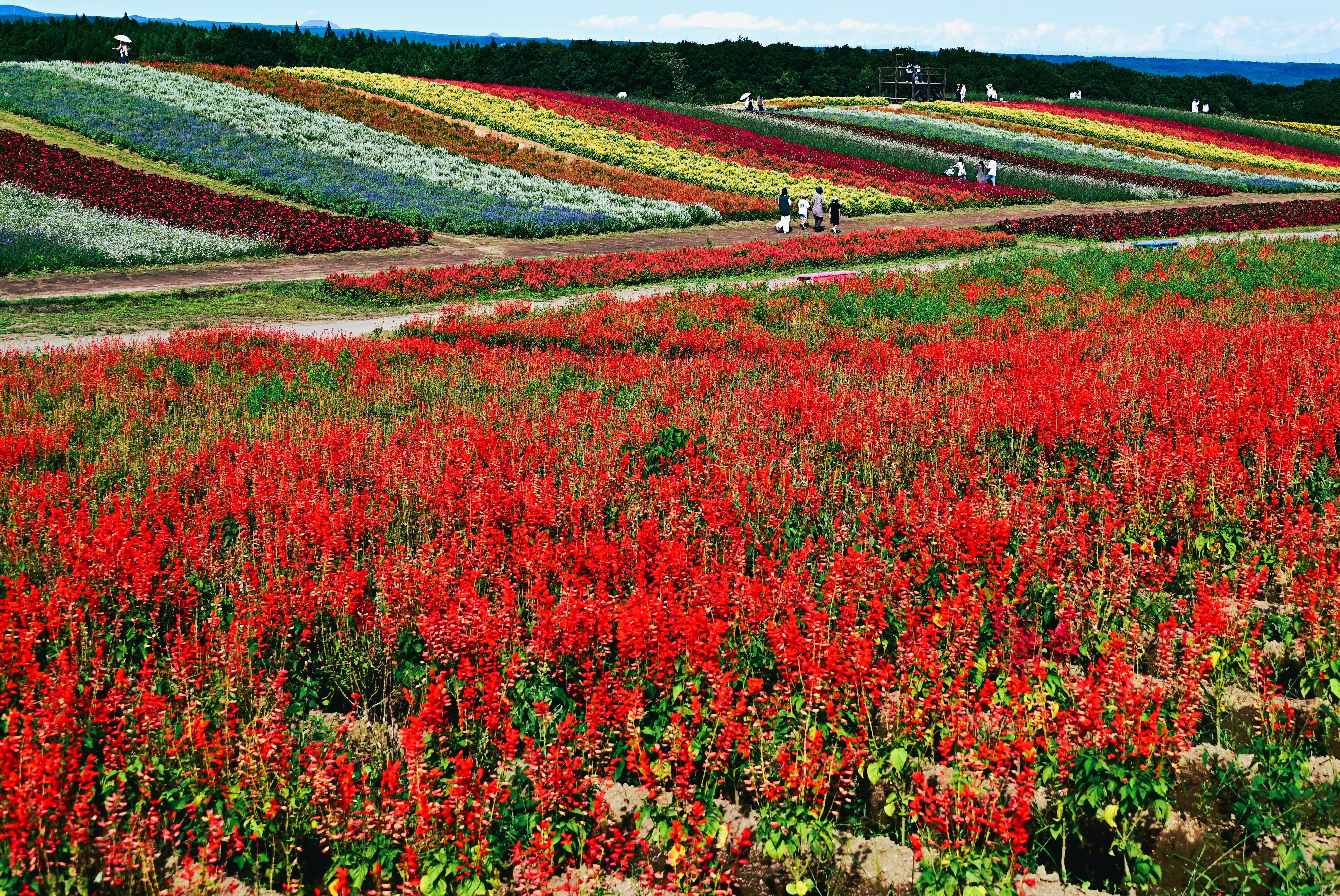 投稿を表示サルビアのようですね。お花畑で散歩して撮影していると、男でも気が安らぎますね。ストライプに植えられた畑も見事です。