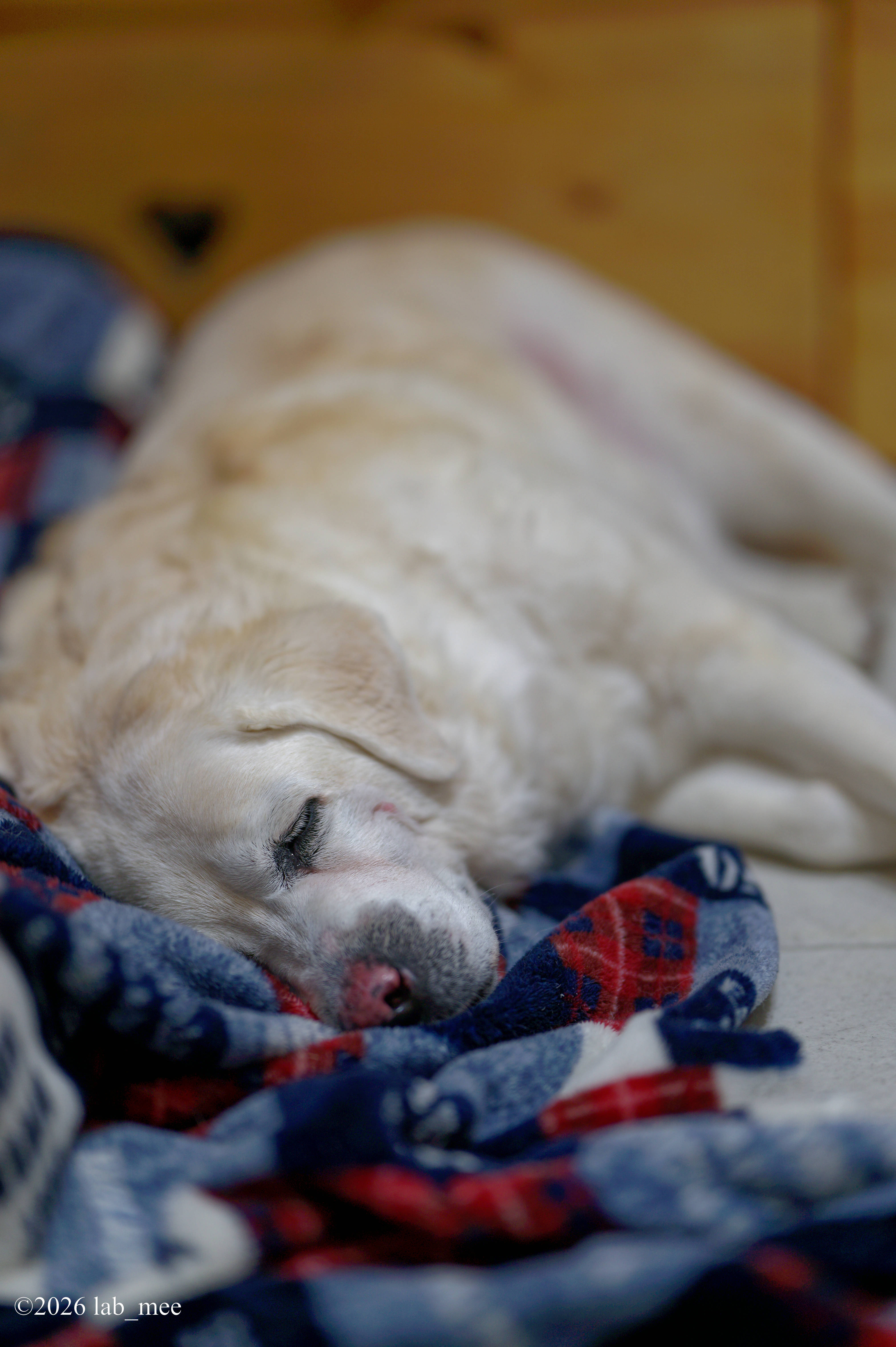 毛布を自ら敷いて寝るミミ。手がかからない、いい子です。