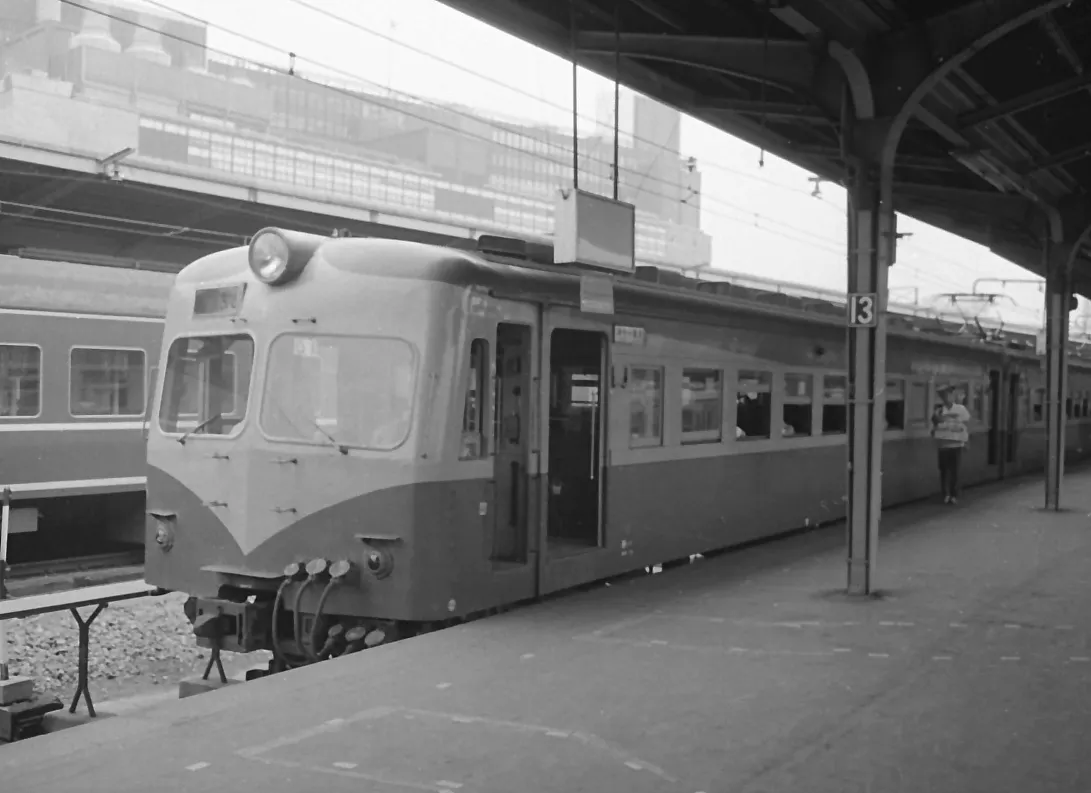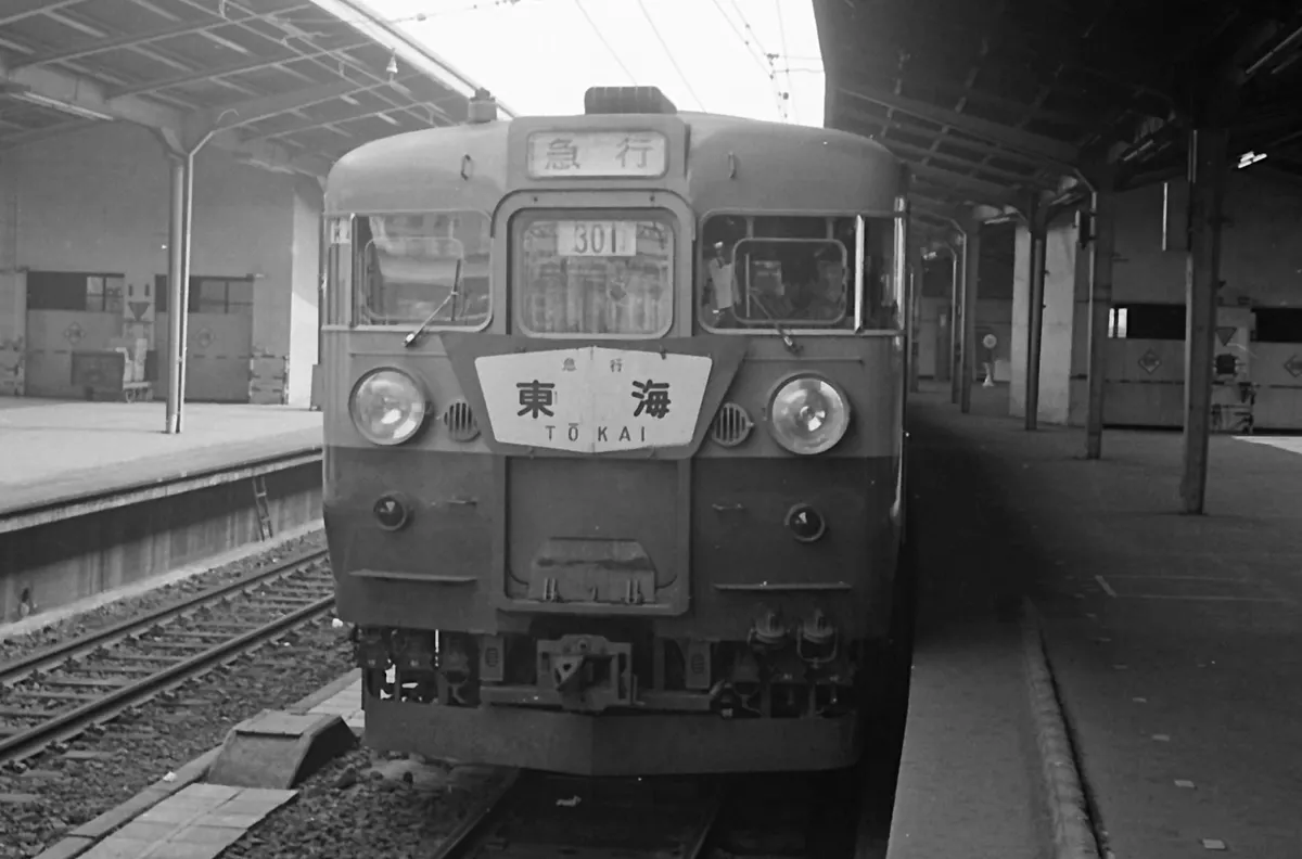 5枚目は東海道本線の普通列車で豊橋辺りまで行っていたかな、右端に駅弁売りのおじさんが立っています。緑字にオレンジのミカン畑をイメージしたカラーだったので、湘南電車の愛称で呼ばれていました。