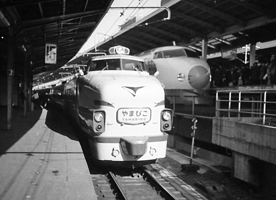 今から約55年前の昭和43~45年当時の東京駅に集まる列車です。1枚目は東北本線の特急「やまびこ」と東海道新幹線0系。これ以前から、東京駅始発の東北方面行の列車がありました。