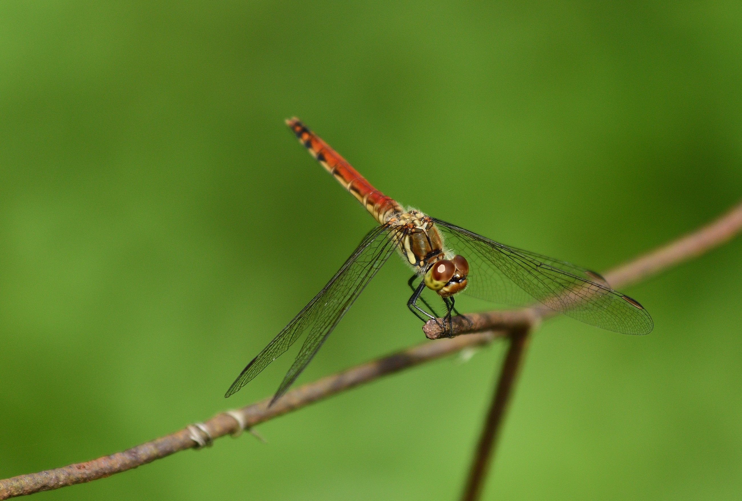 投稿を表示とてもいいショットですね。警戒して伏せの体制を取っていますが、前からは中々撮影させないのがトンボですから