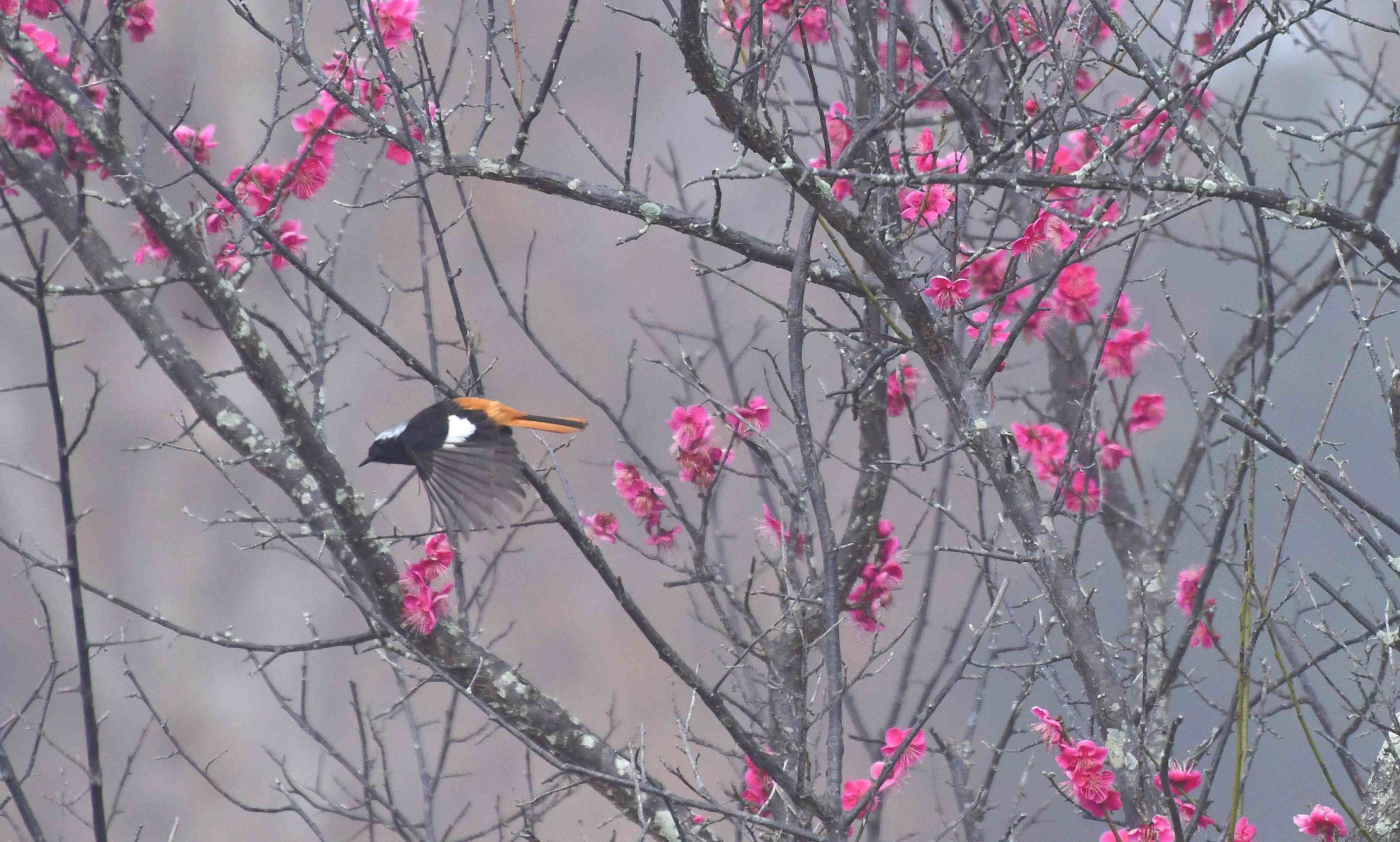 投稿を表示ジョウビタキの黒/白/オレンジに紅梅の赤が映えますね