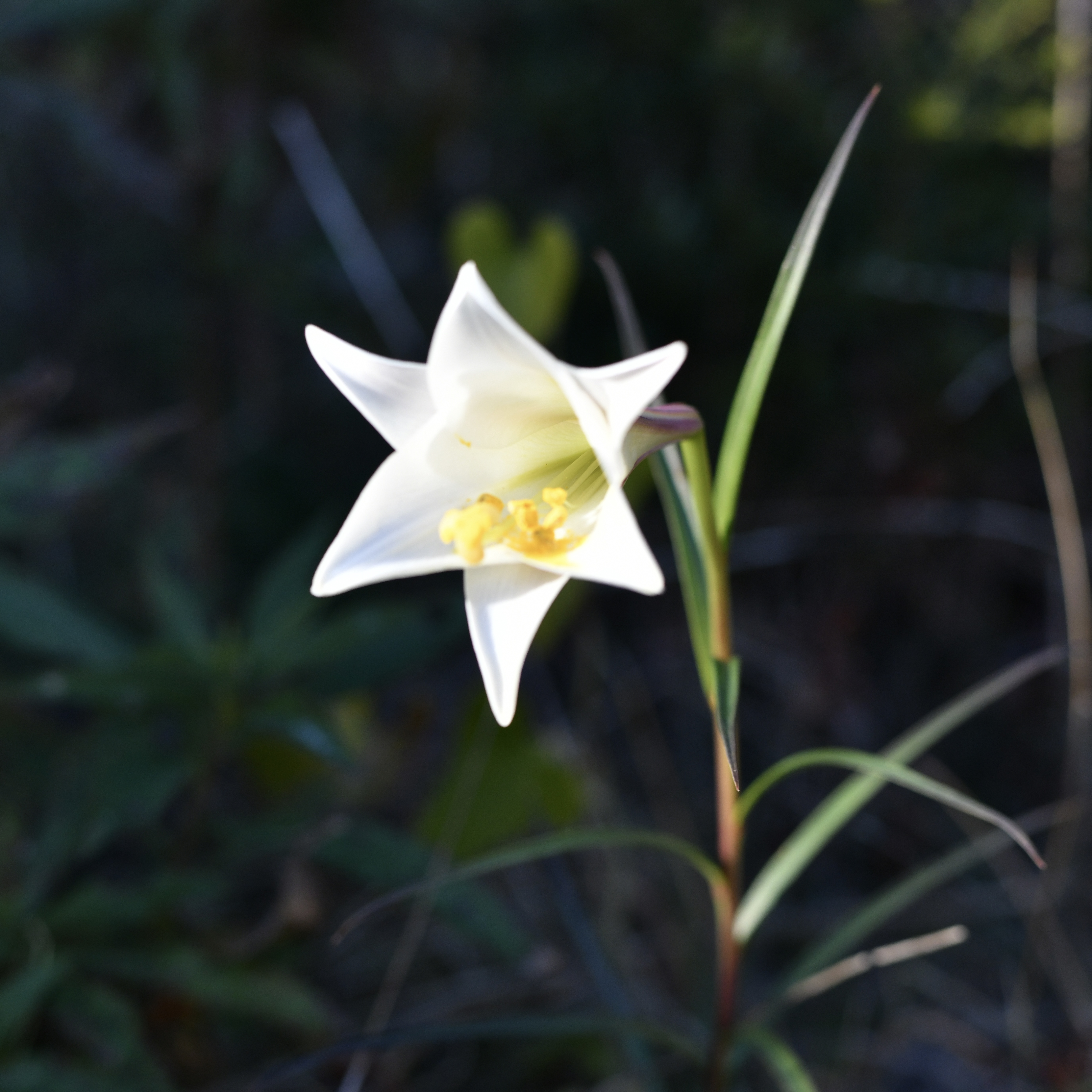 小さな薄明光線を浴びた高砂百合