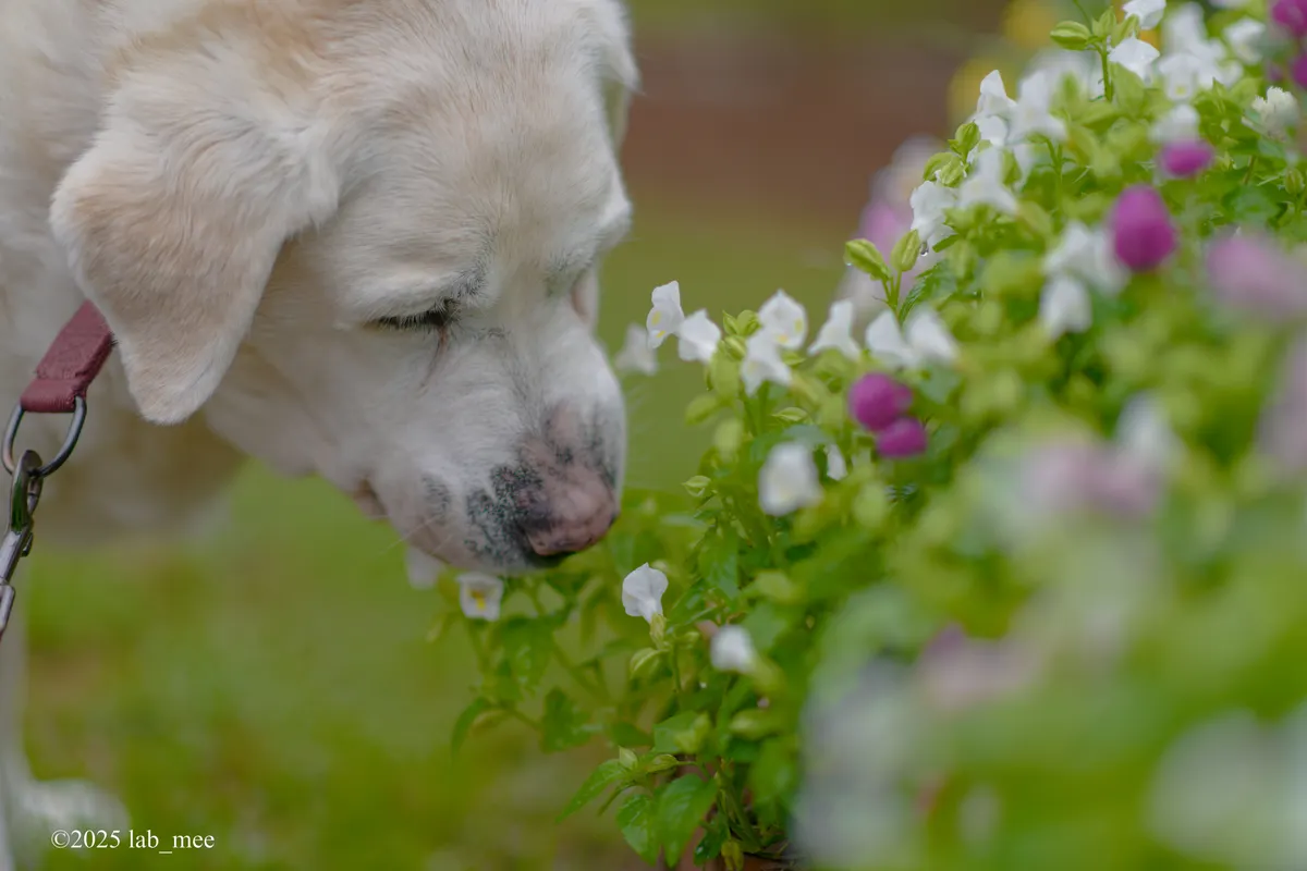 花の彩り(視覚)と香り(嗅覚)、触り心地(触感)とその音(聴覚)と、五感を通じて心に溜め込んでいるかのよう。