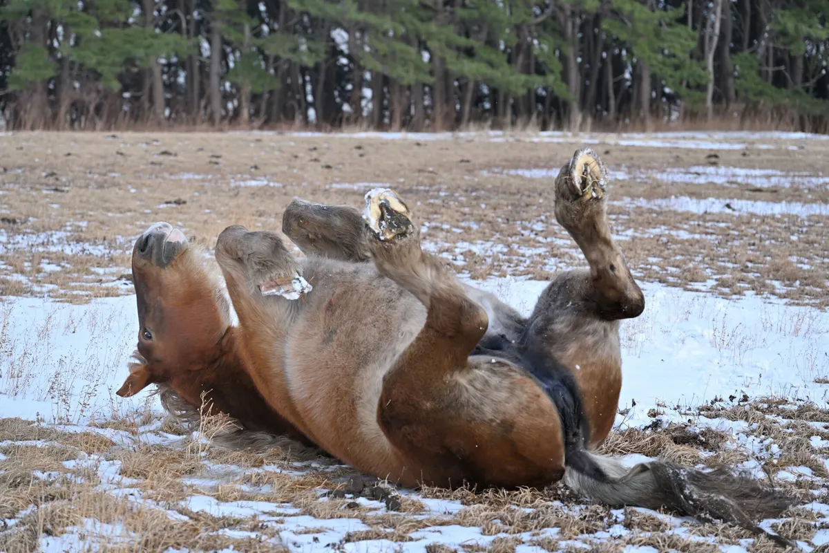 投稿を表示転がっているのは遊んでいるのでしょうか。それとも背中がかゆいとか。生き生きとした様子が見られて感動です。当たり前ですが、野生馬は蹄鉄をつけてないんですね。(^^)