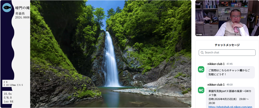 また、元滝を訪れた際に隣の山形県酒田市にある土門拳記念館を見学し、土門拳の写真を拝見したともお話しされました。土門拳はニッコールクラブの創立メンバーの一人でもありま