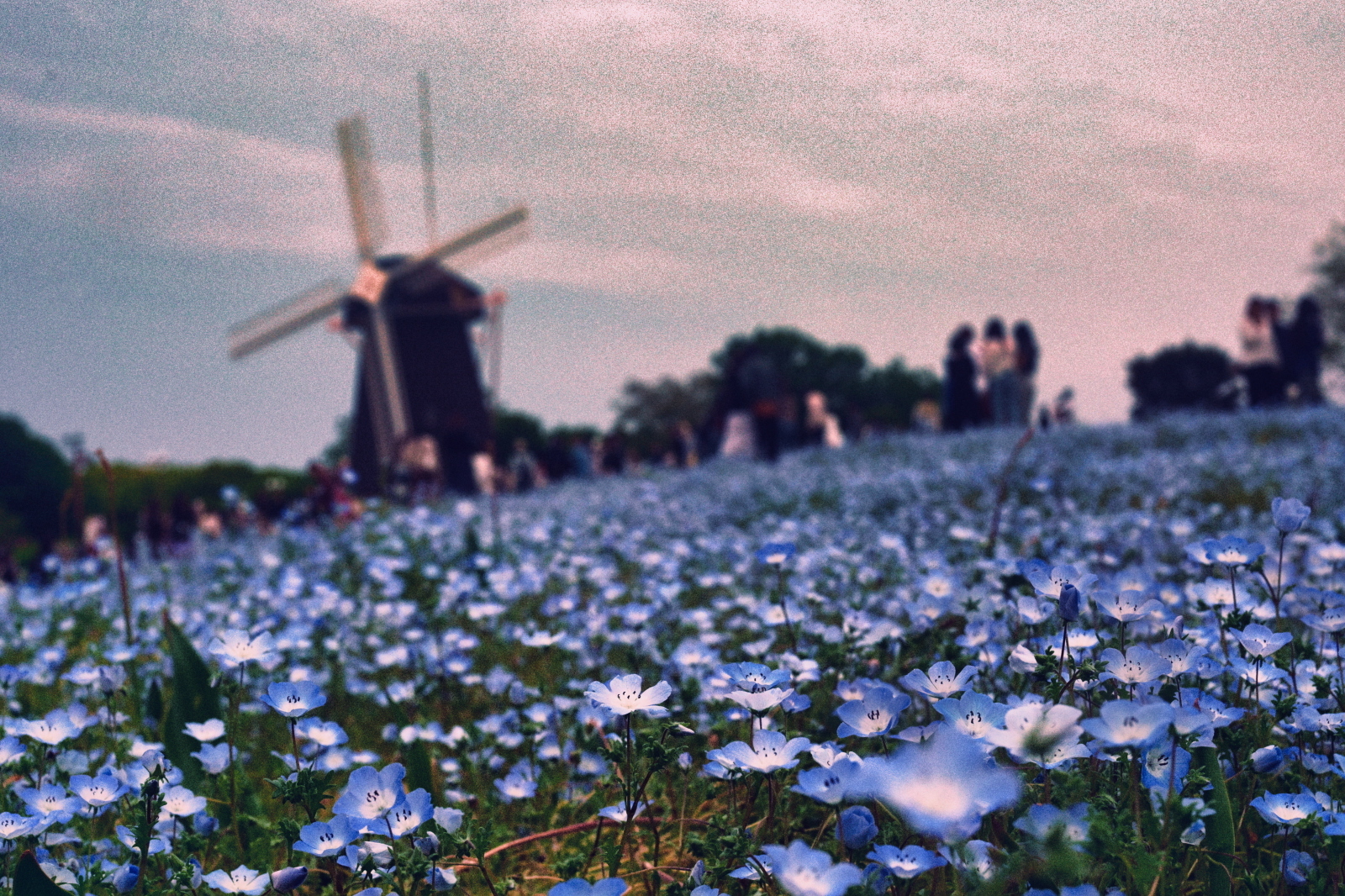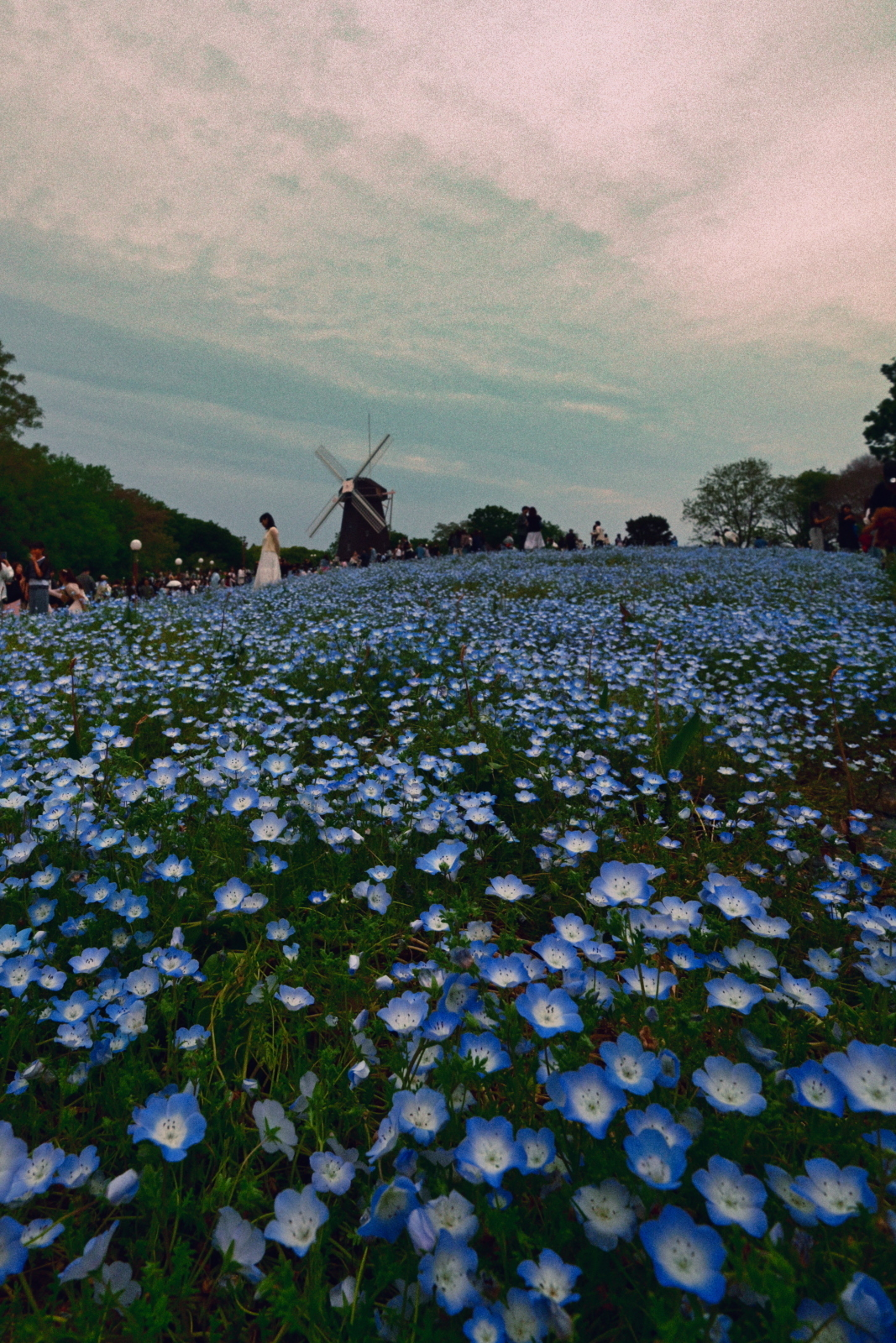 連休初日雨が降りそうですこし肌寒い鶴見緑地へ。写真を始めて初のネモフィラ撮影、どう撮るのが正解なのかまったくわかりません💦。人人人なネモフィラ畑でした。