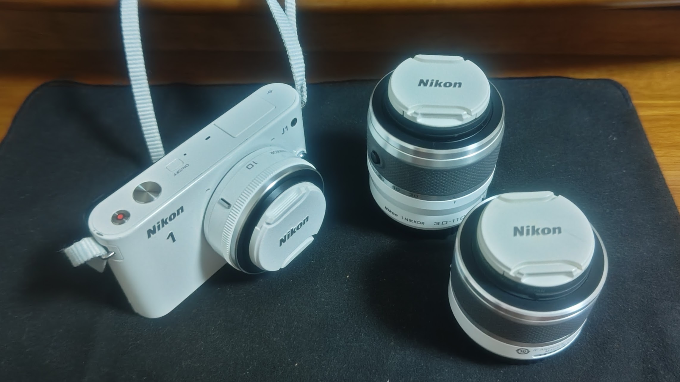 これが10年以上も前にアウトレットで購入した初ニコン「ニコン1J1(ダブルズームセット)」と最近見つけた10mmF2.8(ダブルズームのレンズも直したいなぁ!)