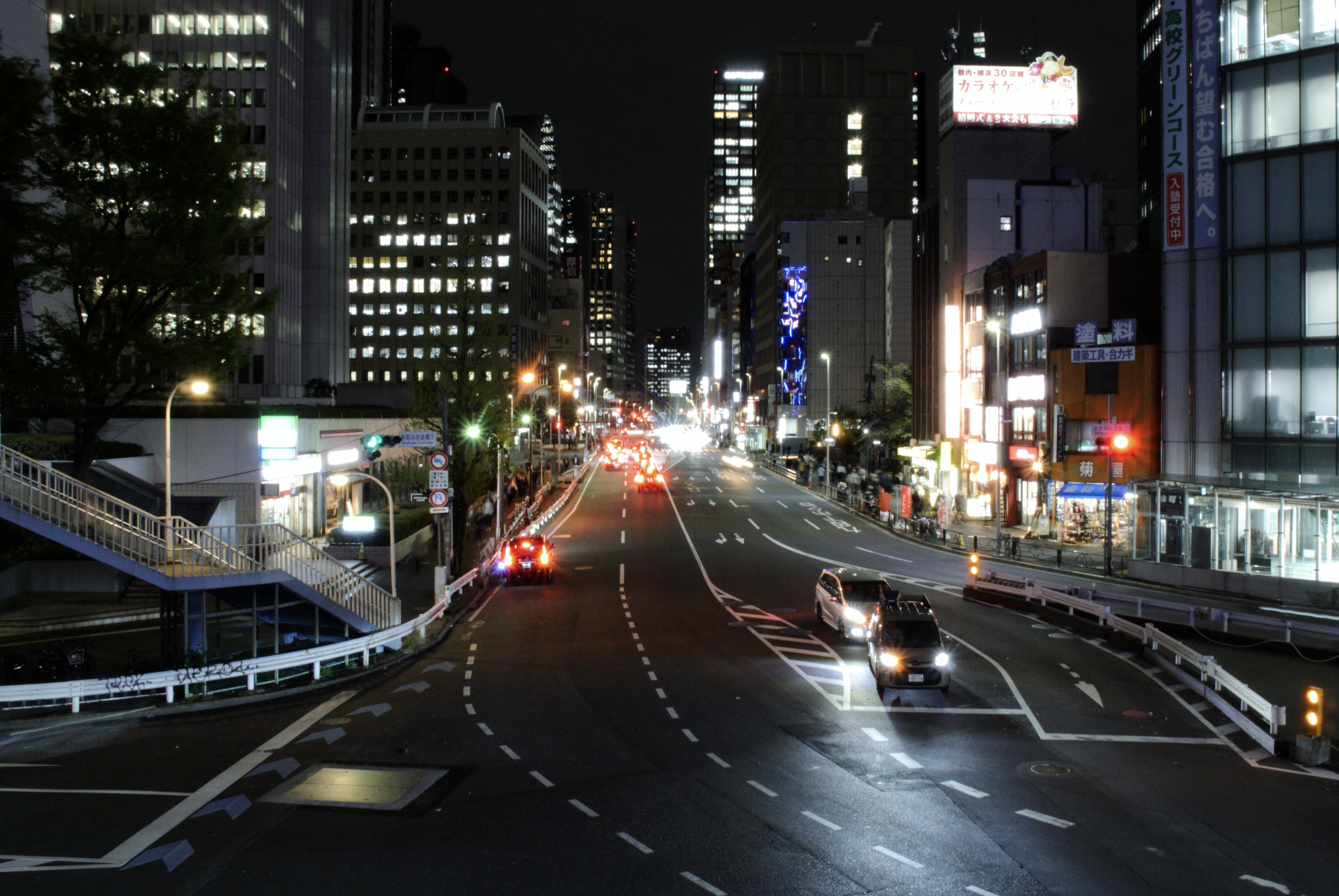 新宿のフォトスポットだと思っている歩道橋の上からスローシャッターで