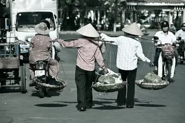天秤棒を担ぐ人 2009年にベトナム・ホーチミン市チョロンで撮影した作品です。映画・「ラ・マン」になった舞台です。中華の薫りの残る街ですが、時々一人で散策していました。天秤棒を担いで今から路上で物売りのでかけるのでしょう。ブリーチ100%で現像してみました。^^