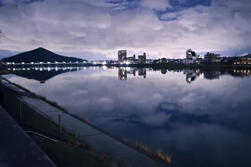 NEW 対岸を望む 雨上がりの夜でしたが、風がなく水面に景色が映ってよい雰囲気でした(^^) Zf Z35mmf/1.8