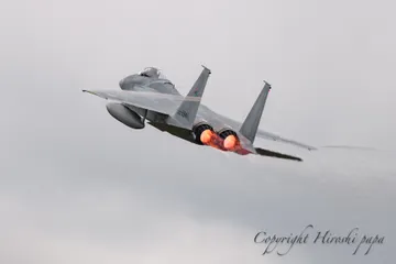 岐阜基地航空祭でのショットF15イーグル、AB全開での急上昇これぞイーグル、鉄腕アトム二人分の推進力は伊達じゃない!