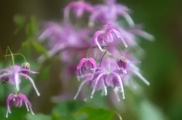 イカリソウ イカリソウも負けじと舞台に登場しました。奇妙な形ですが、白から薄紫へと微妙な色の変化が面白いですね。