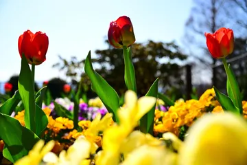 花畑 近所の公園の花壇にかわいいチューリップが咲いていました。